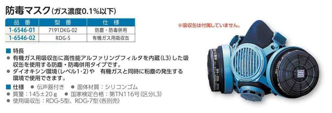 対応吸収缶(別売り):RDG-5型、KGC-15型、RDG-7型(各2個)