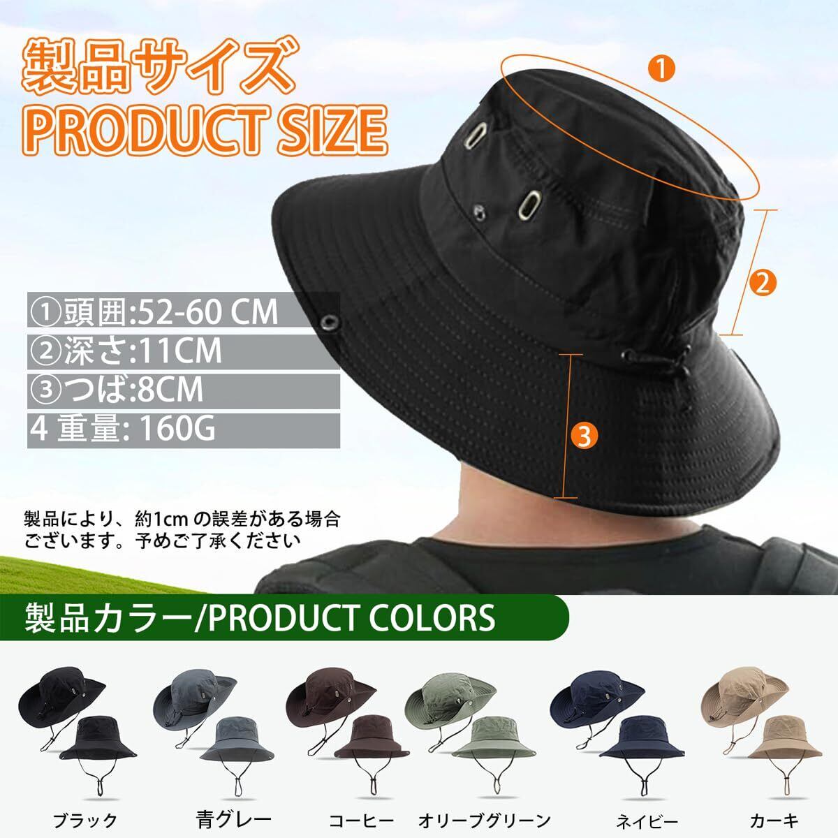 【サイズ調節可能】サイズ:頭囲52-60cm;あご紐の調節も可能で、頭にフィットするようにコードの長さを簡単に調整できます。左右にスナップボタンが付いており、つばを折り曲げて形を変えられて、気分転換として大活躍してくれる