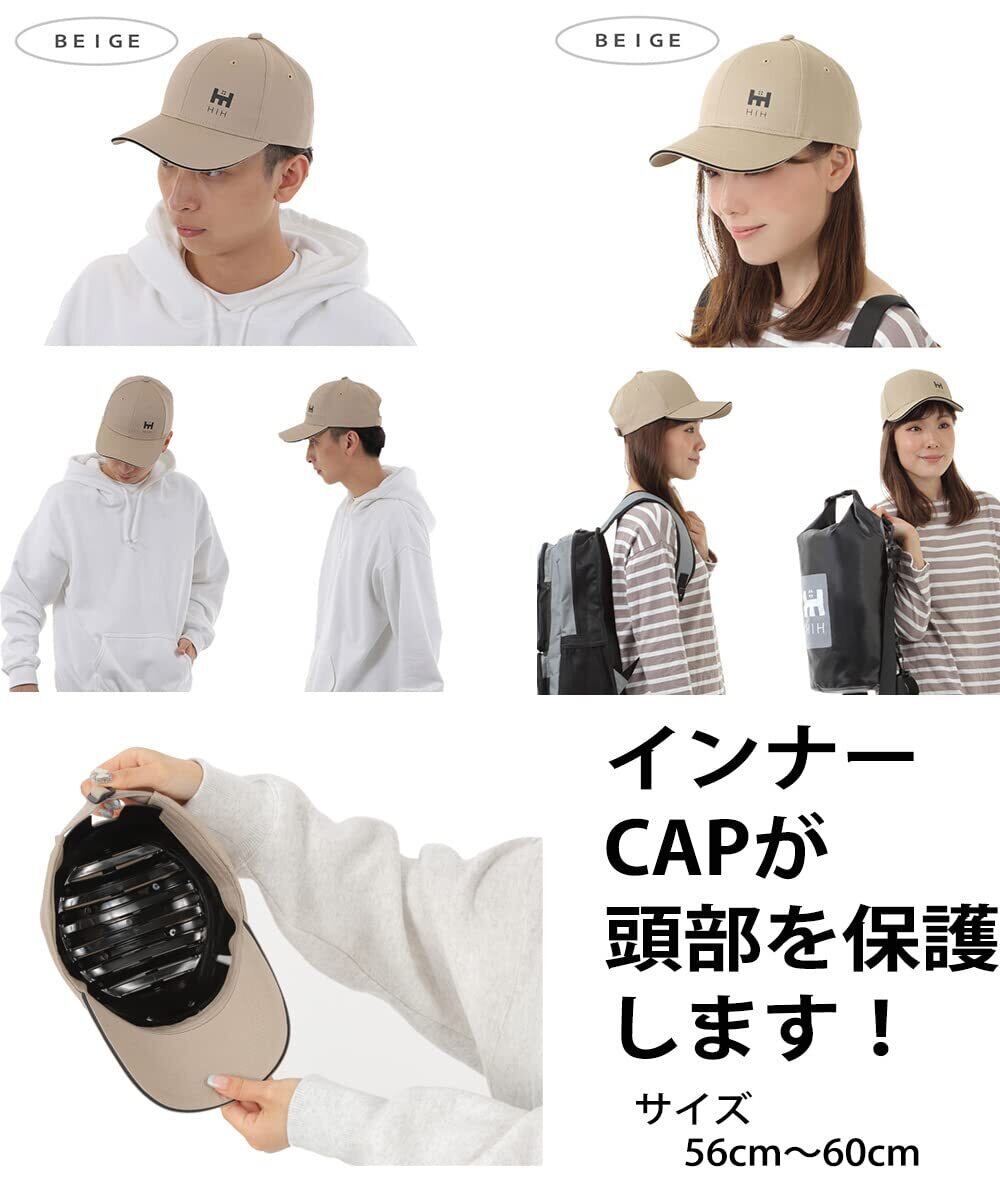 HIH デザイナーズヘルメット 防災グッズ 【福島県企業が開発】ボウメット コットン 帽子型簡易ヘルメット 防災用 CAPメット キャップメット 安全帽 (ベージュ)
