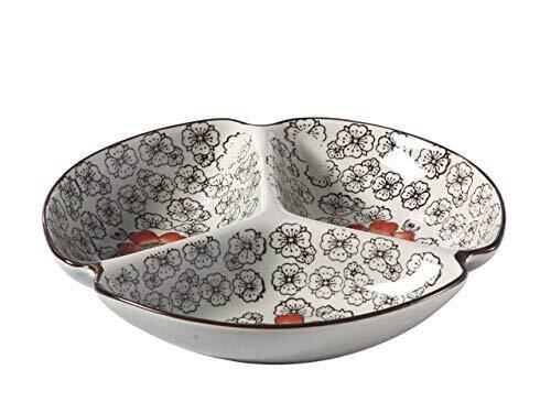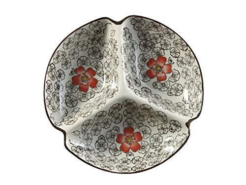 西田(Nishida) 7.5号三つ仕切り皿(赤い椿)/おうち料亭/業務用食器/中皿/大皿/丸皿/和食器/仕切り皿 120043