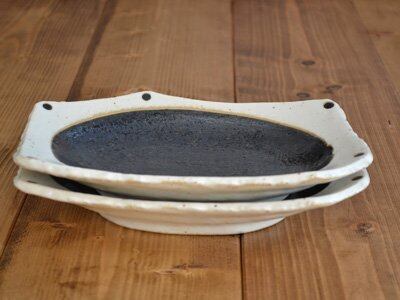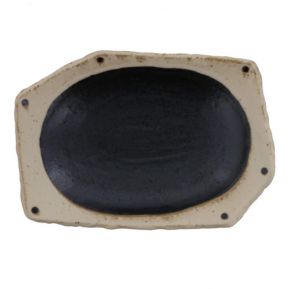 サイズ/約21.8×15×高さ3.5cm 重さ/約570g(商品により誤差があります。) 素材/磁器 質感/マット(黒部分はざらざら)(ラップは付きません)