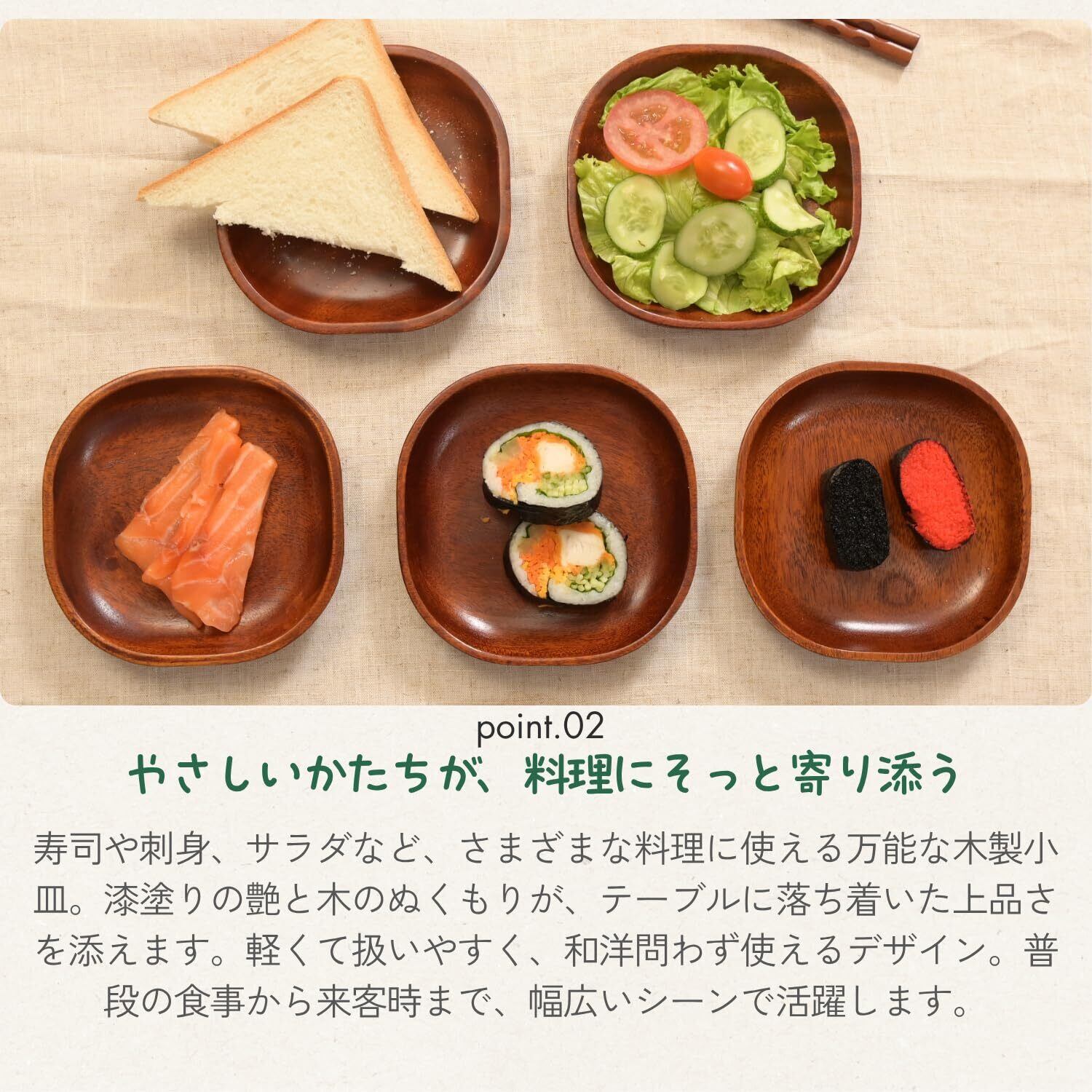 【 割れにくく、軽量で扱いやすい 】陶器の皿と異なり、木製のため割れにくく、持ち運びにも便利。お子様がいる家庭や、キャンプ・アウトドアシーンでも安心して使えます。