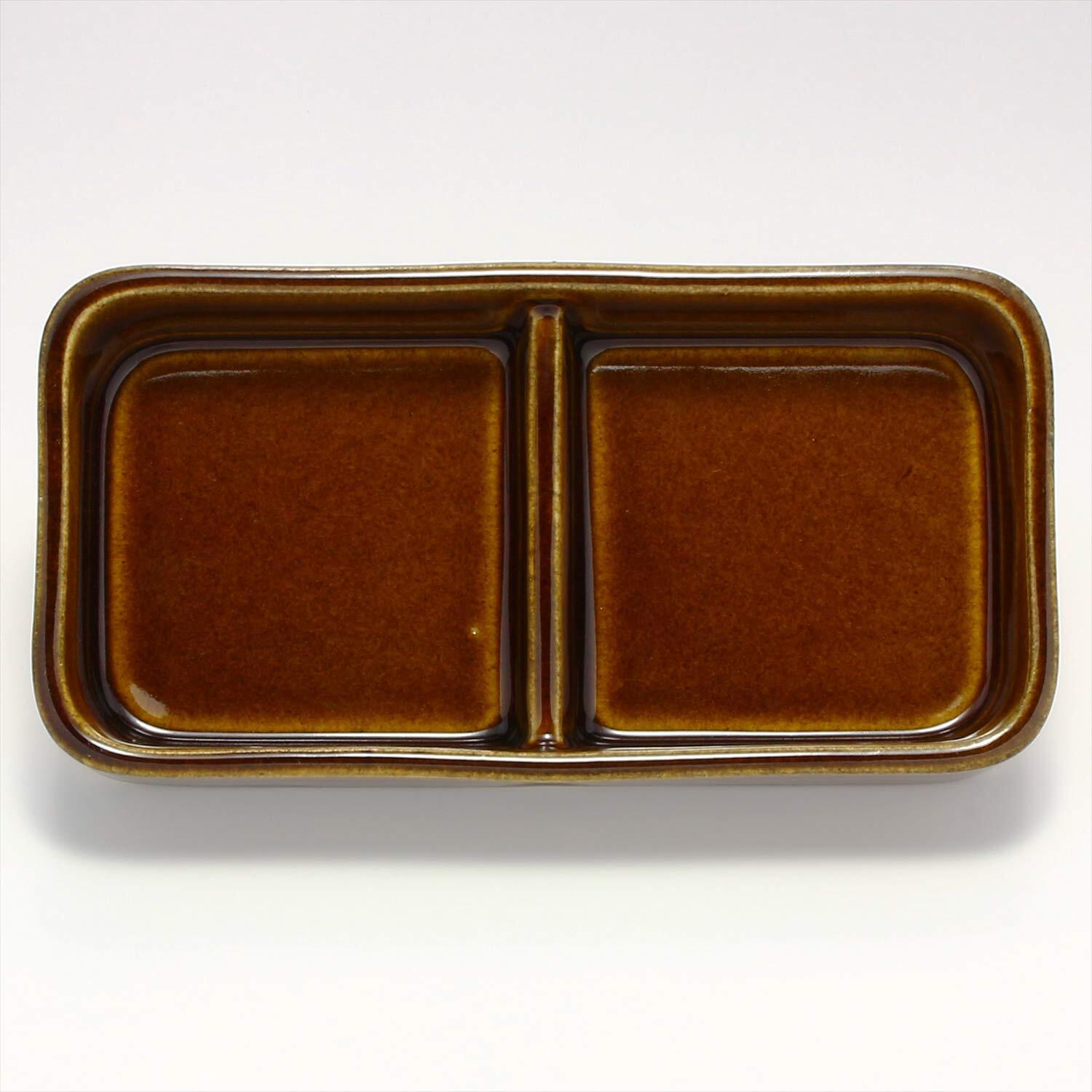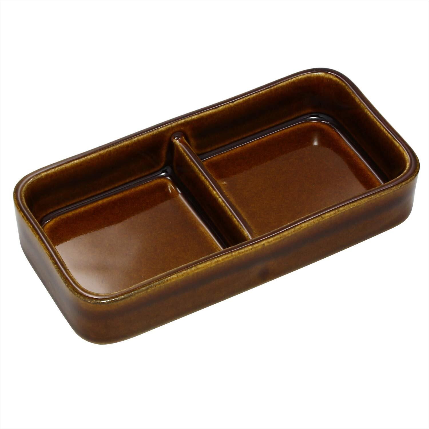 長谷製陶 長谷園 薬味 仕切り 皿 茶色 アメ釉 ANM-39 14×7×2.5cm