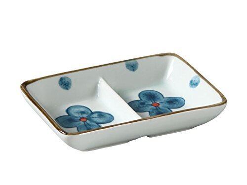 西田(Nishida) 4.5号二仕切りタレ入れ皿/醤油入れ/醤油皿/薬味皿 (青い四つ葉) 120271