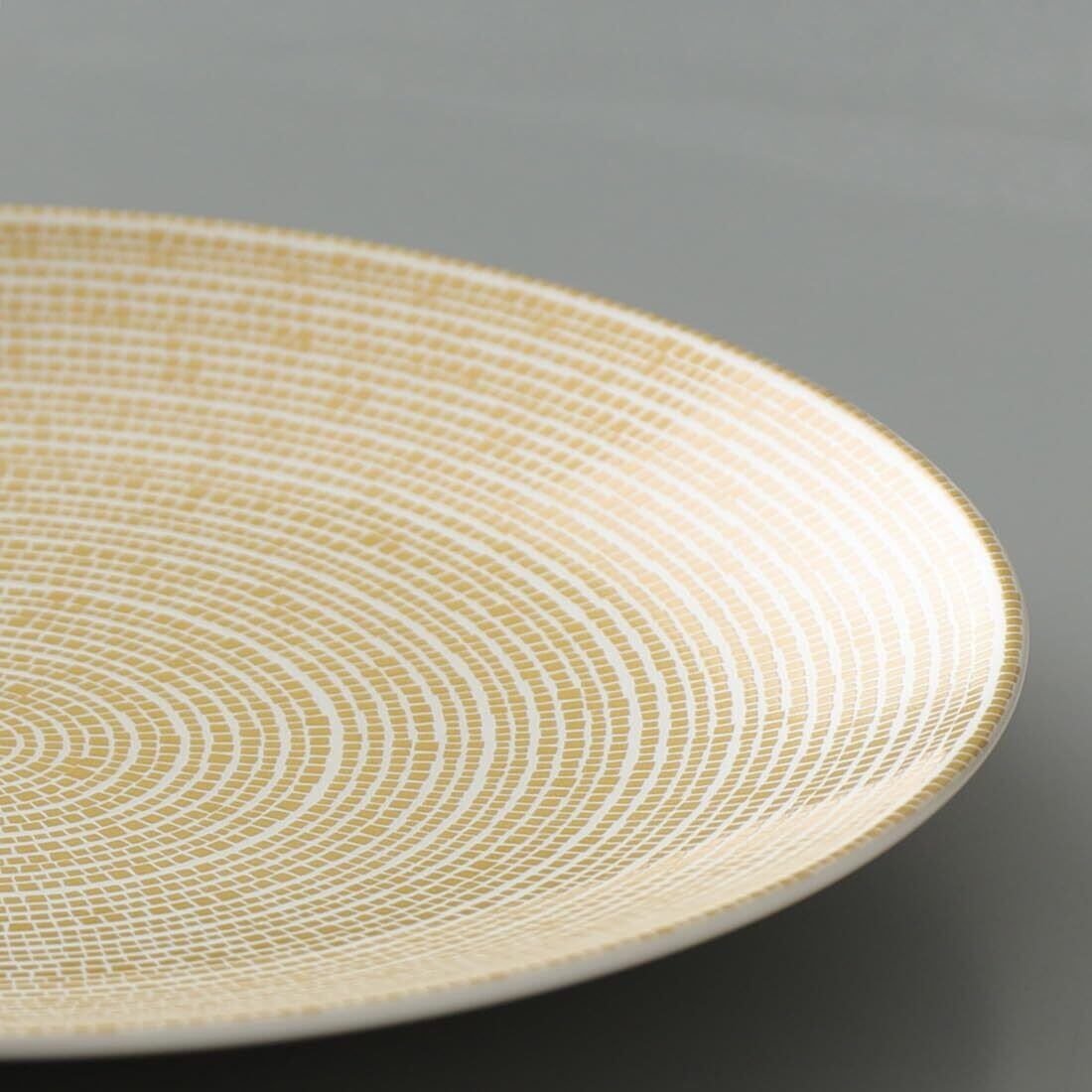 自然界に存在する多彩な光の美しさやキラキラとした輝きがモチーフで、モダンにもナチュラルにもマッチする幾何学模様はパール転写に盛りを合わせて立体感を表現しており、食卓のアクセントアイテムになります。