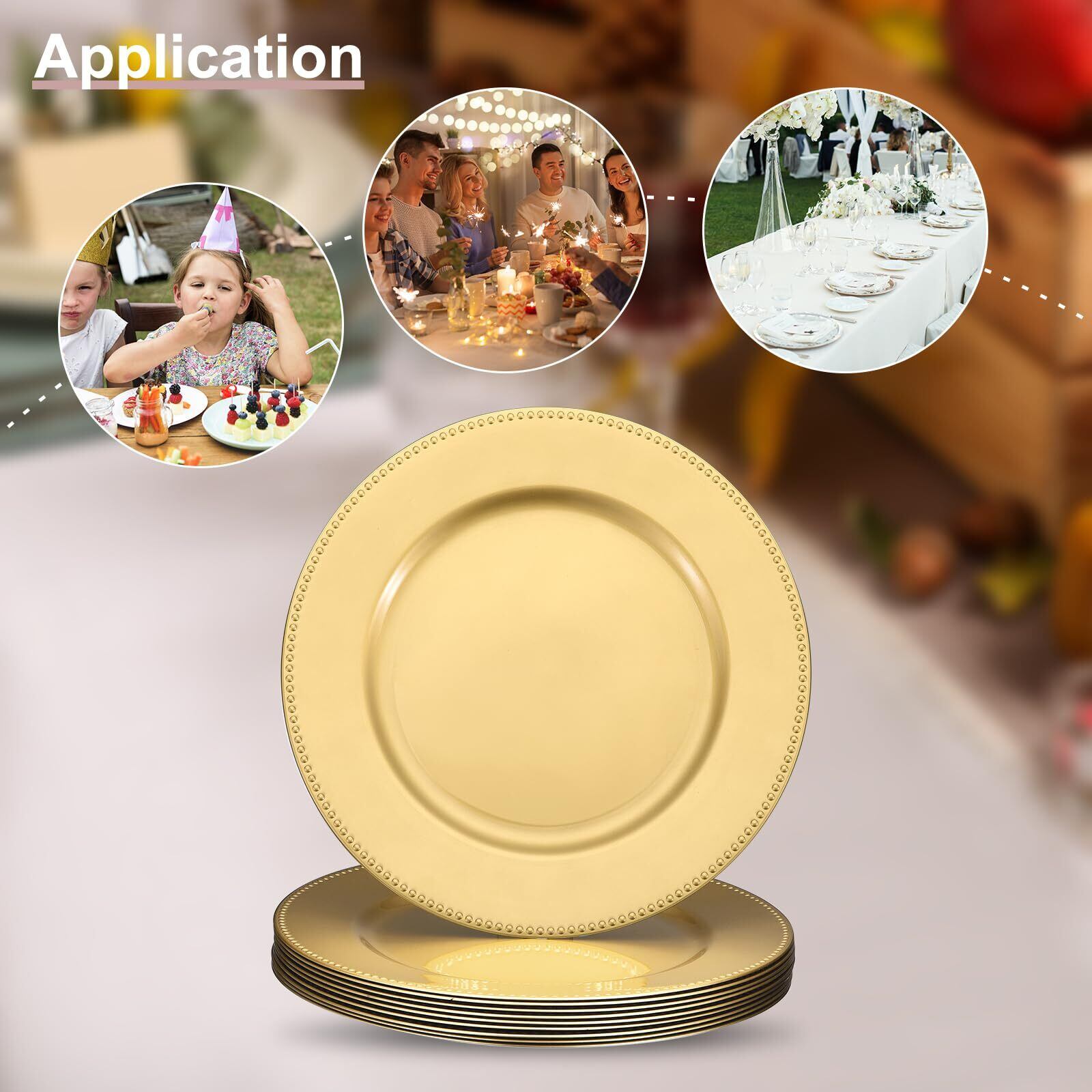 uxcell 10個セット チャー ジャープレート 13" プラスチック製 ラウンドプレート チャー ジャー ディナー 結婚式 パーティー イベント テーブルセッティング デコレーション 金色