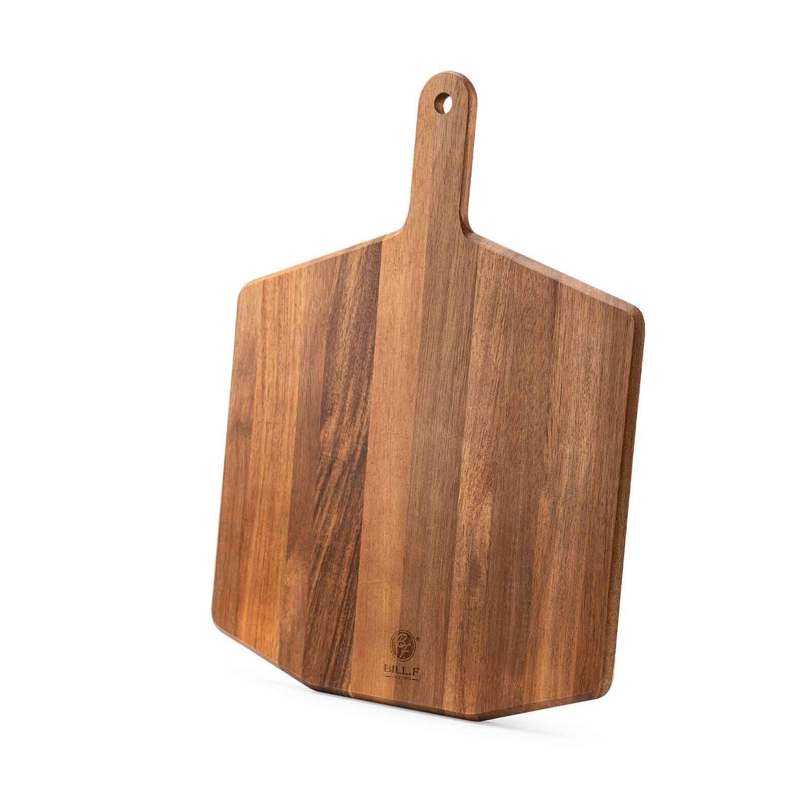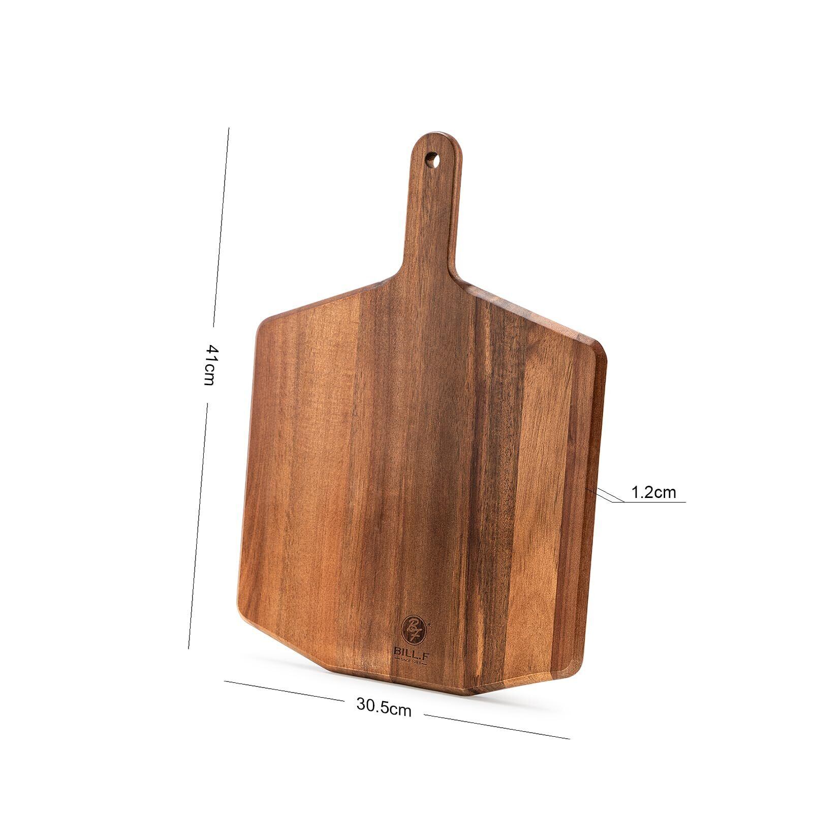 BILL.F相思木単片扇形ピザプレート、小さい体積で使いやすい、表面のテクスチャがはっきりし、エッジが滑らかで、ハンドルは長く携帯に便利です。 おいしいピザ、新鮮な野菜、チーズパン、フルーツサラダ-40.7x30.5x1.2cm