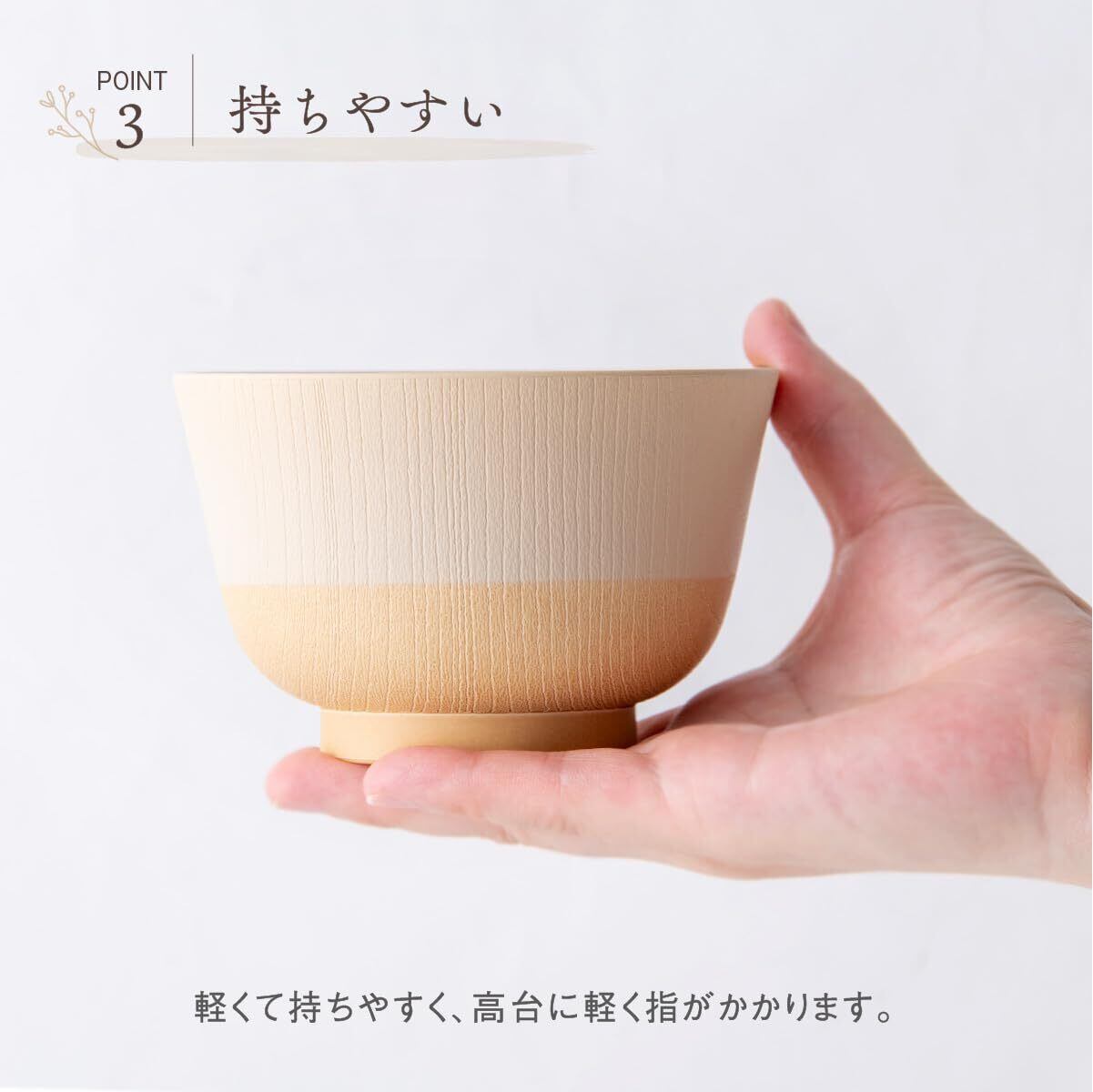 【本物のような木目を再現】樹脂製ながら、まるで天然木のような木目。軽くて割れにくい優秀なお椀です。シニアの方にもおすすめです。