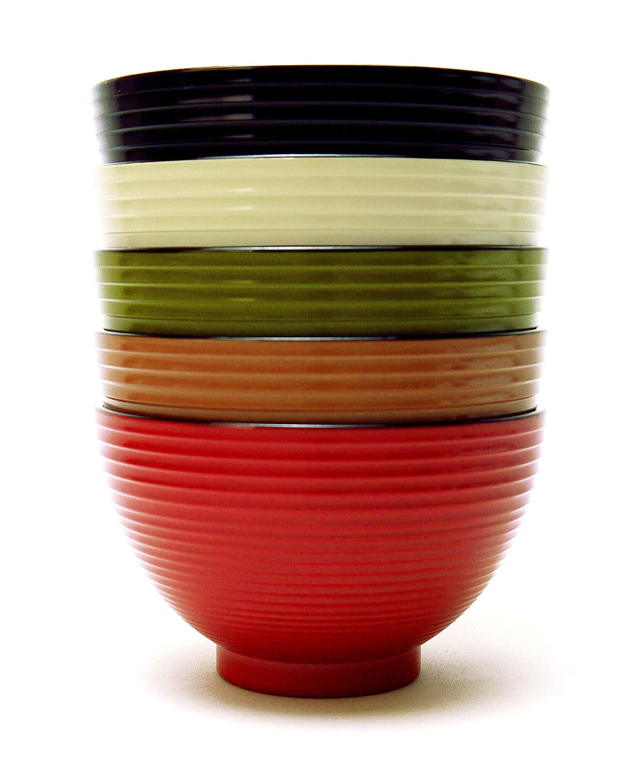 正和 山中塗 和模様食洗機対応汁椀 370ml 5色組 黒、アイボリー、茶、緑、朱 20921125