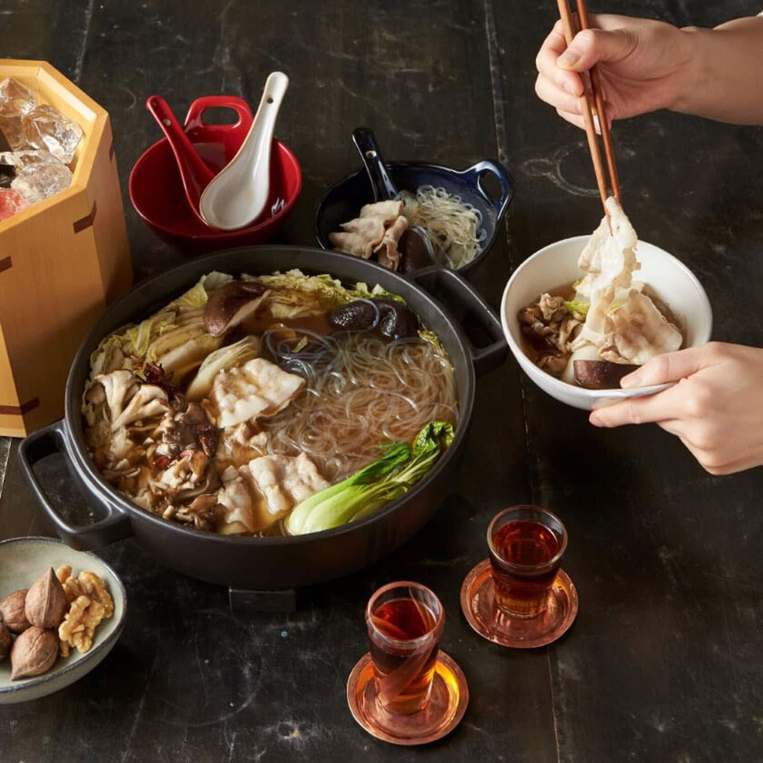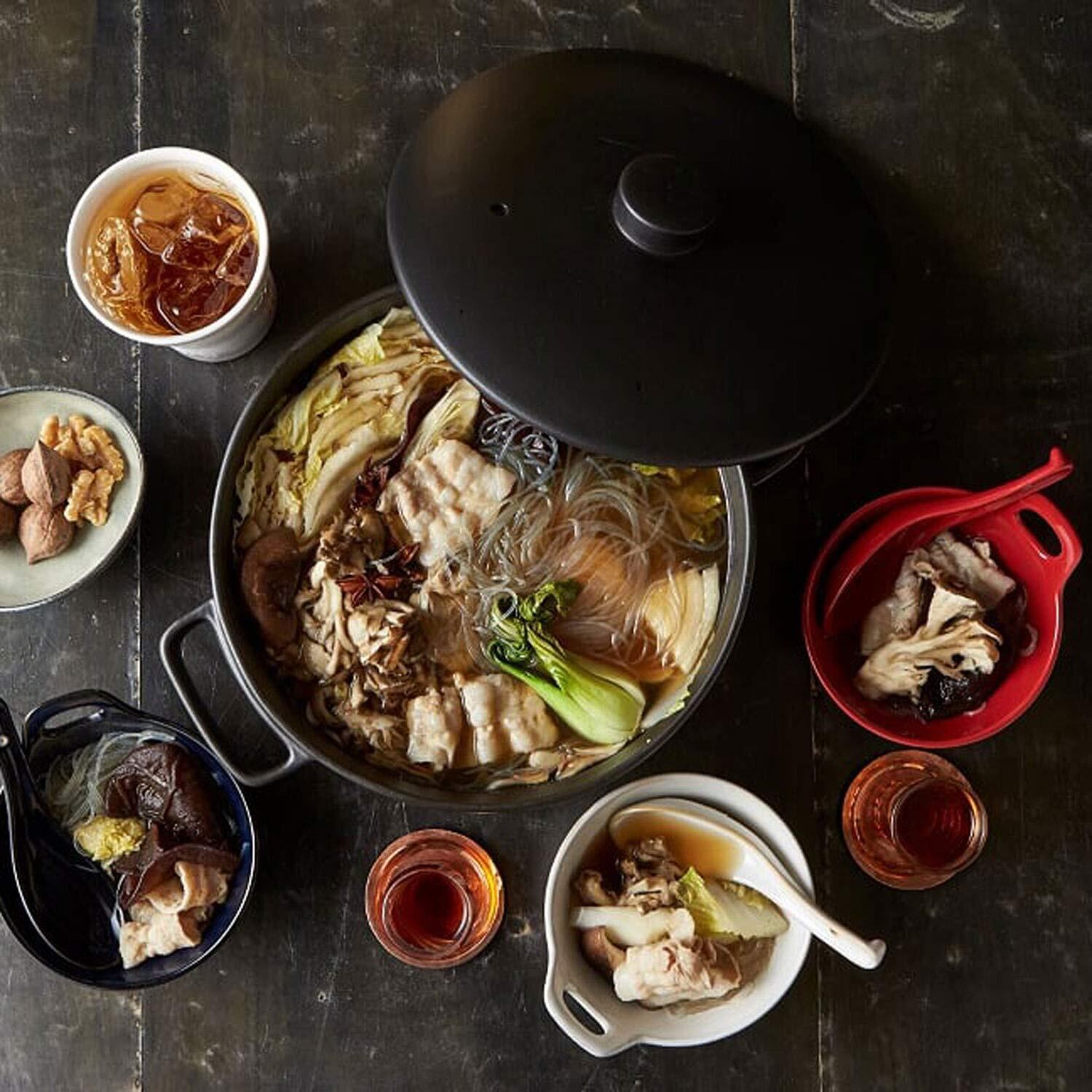 淡いトーンが上品な鍋スタイル。 くすみカラーが洋風料理にもぴったりなお鍋アイテム。 ボウルとレンゲをそろえて上品な印象に。