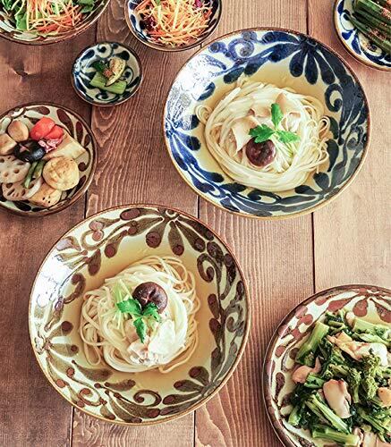 内側に描かれた模様は、ブラウンカラーのサビ色と、染付風のルリ色の2色。落ち着きがあって並べてもうるさくならず、和カフェ風のおしゃれな食卓を演出してくれます。
