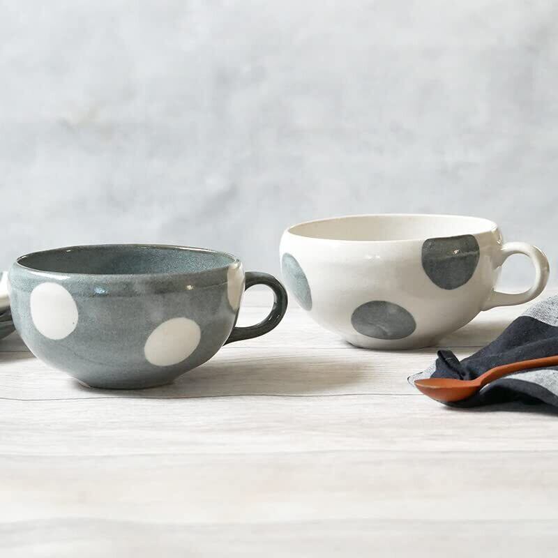 EAST table(イーストテーブル) スープカップ 390cc ほっこり水玉 和食器 グレー