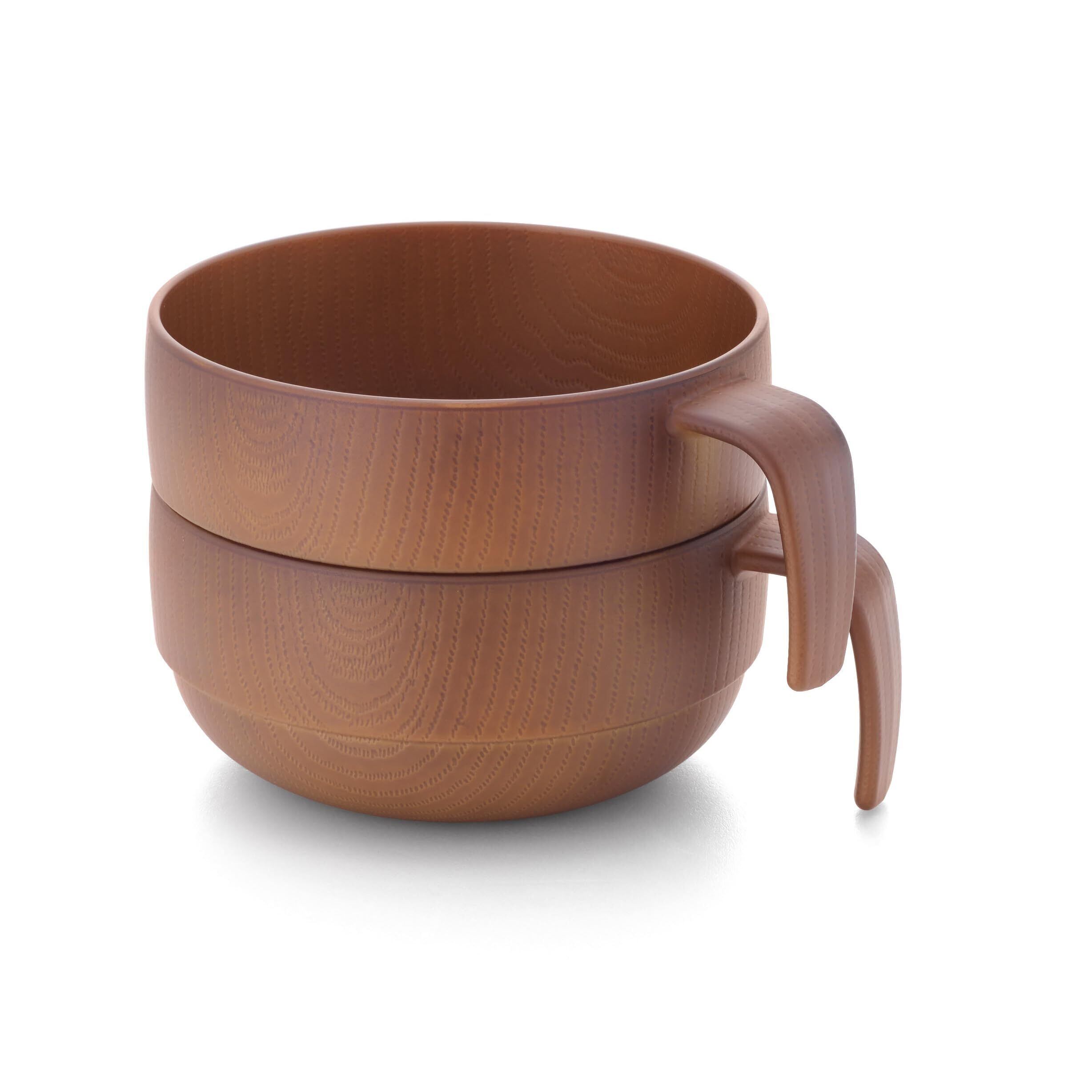 スタッキングできるウッドテイストのおしゃれなカップです。