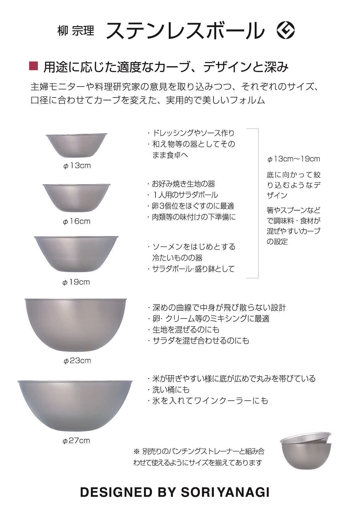 柳宗理 Sori Yanagi 料理の専門家・主婦の意見に基づきデザインされたステンレスボウル 燕三条 ステンレス製ボール 19cm ボールから液体を注ぐとき垂れにくい設計 食器洗浄機使用可能 18ー8ステンレス