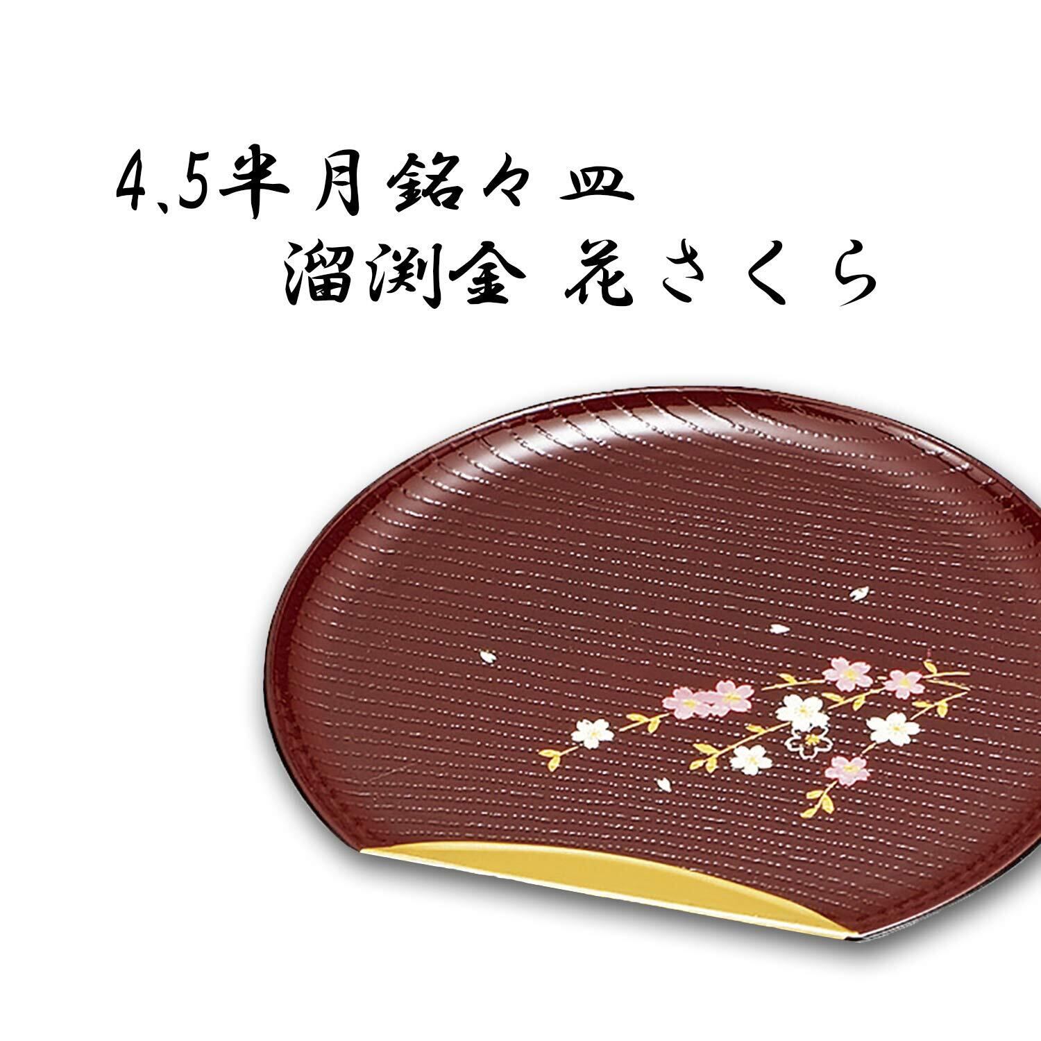 宮本産業 皿 4.5半月銘々皿 溜渕金 花さくら 溜 約12×13×0.8cm