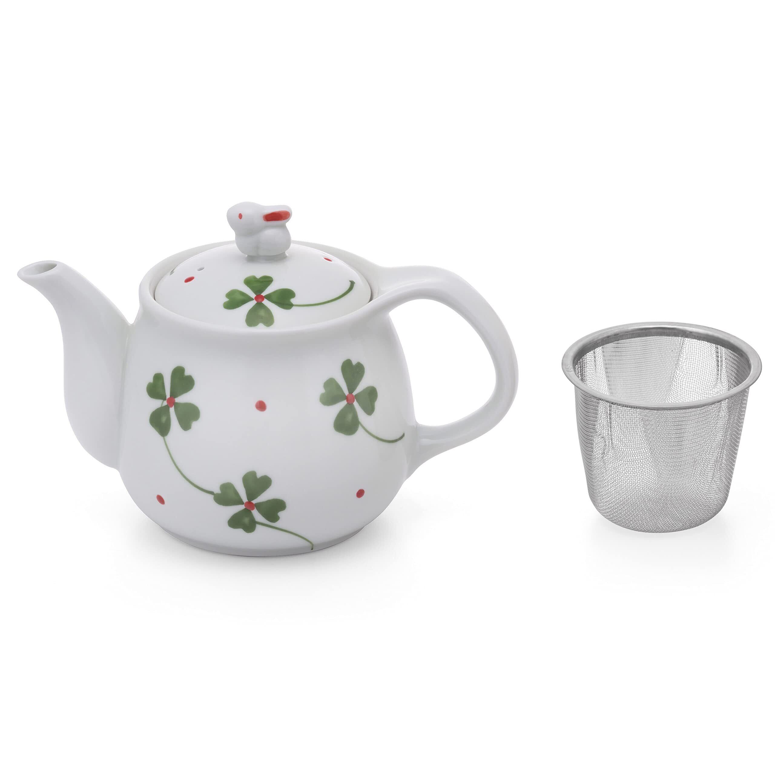 縁起の良い四つ葉のクローバーとうさぎで、癒しのひと時をお過ごし下さい。手描きでかかれた色鮮やかな四つ葉のクローバーです。つまみやすいうさぎが可愛らしいです。持ちやすい大きめの取っ手で使いやすいです。湯呑約3~4杯分。湯吞み以外は商品ではありません。