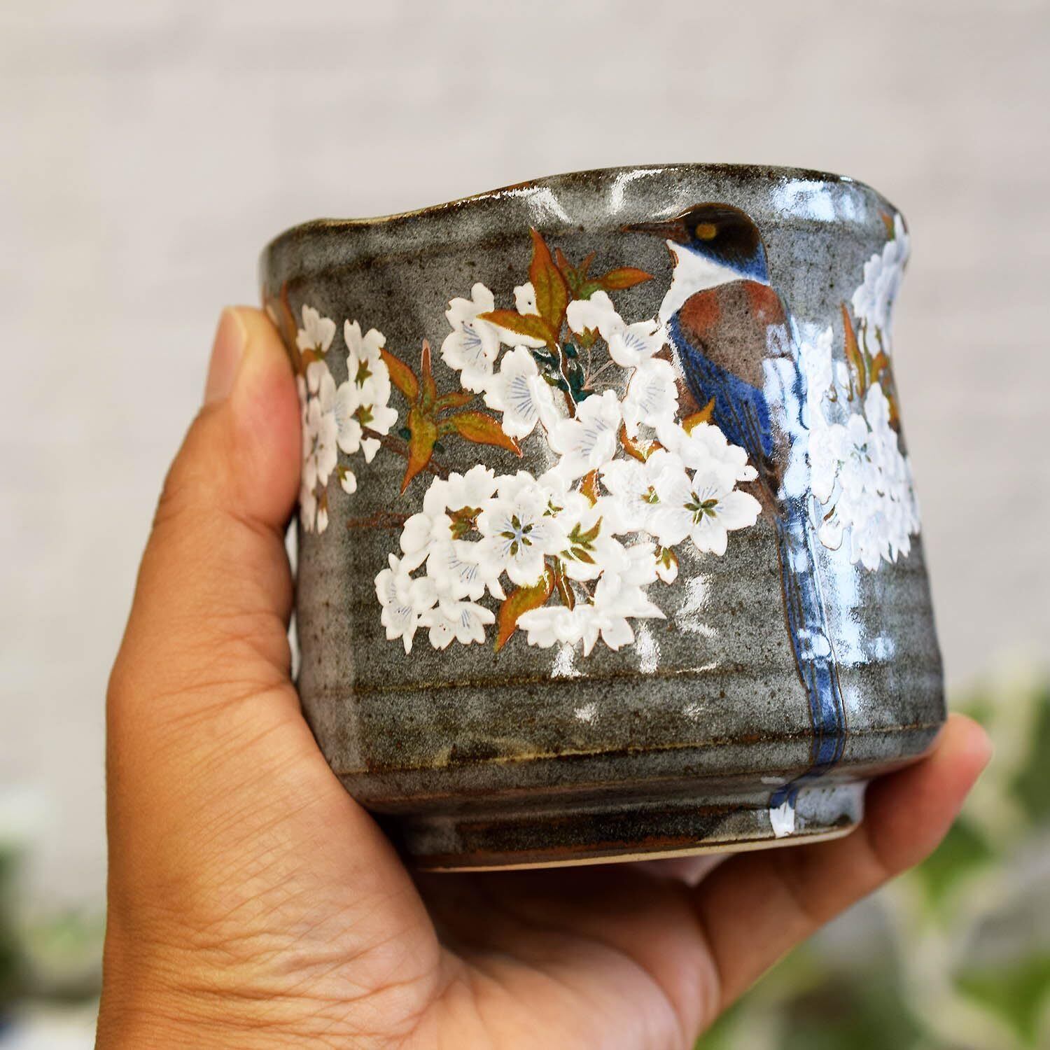 和座の蔵 おしゃれ 九谷焼 湯呑み 山桜に鳥 大きい 湯呑み茶碗 陶器 ブランド 和食器 日本製 誕生日プレゼント 還暦祝い 古希祝い 喜寿祝い 傘寿祝い 米寿祝い ギフト