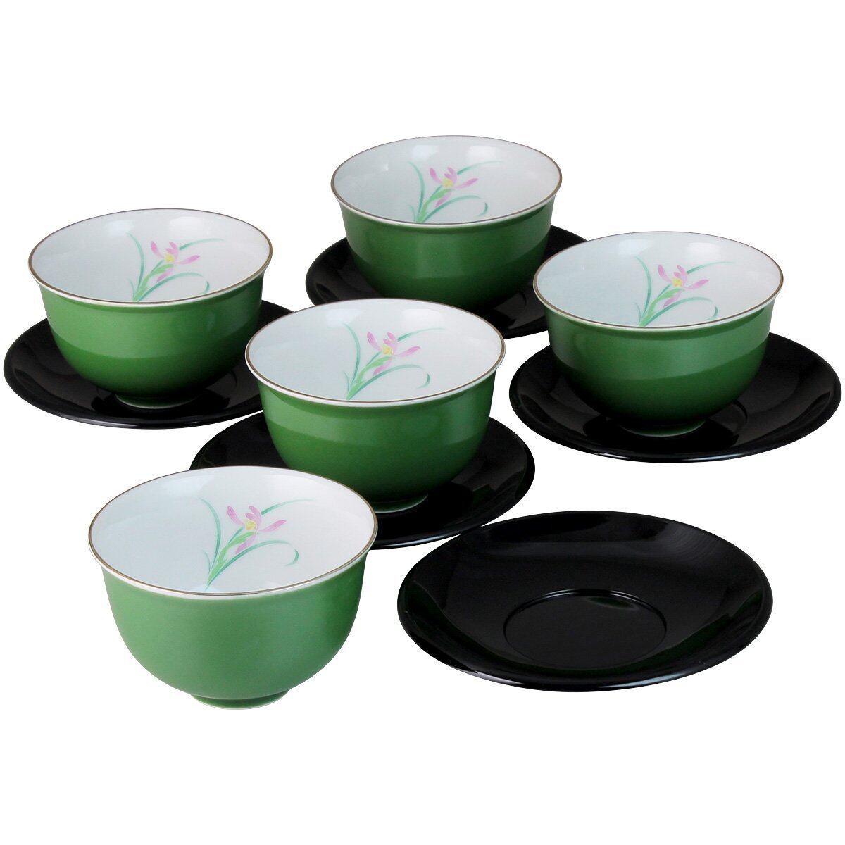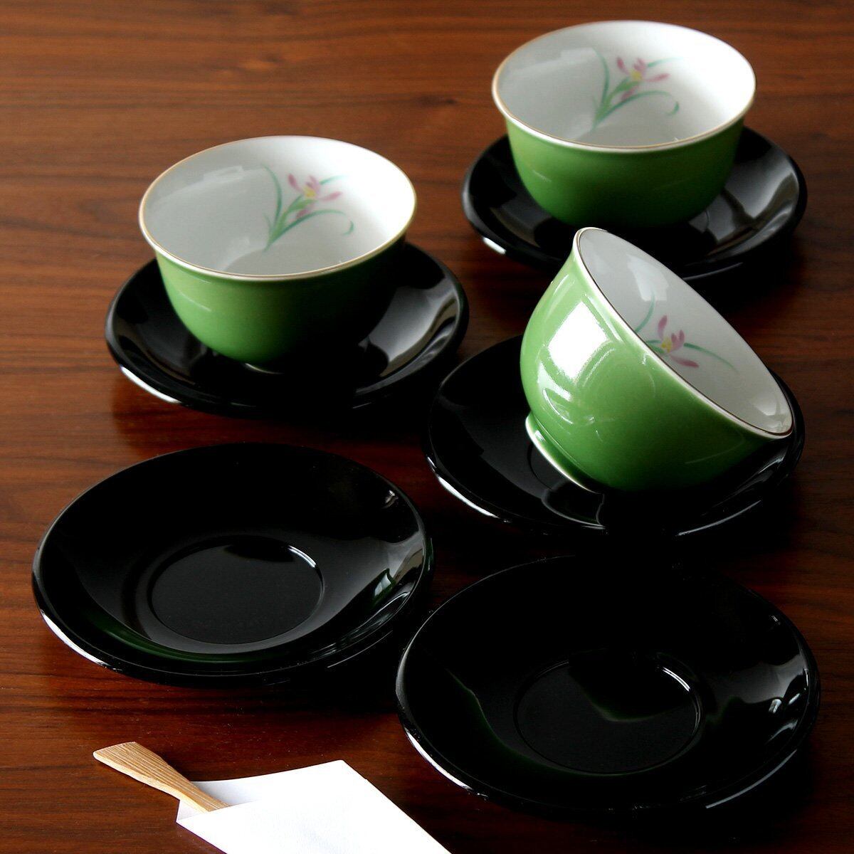 ランチャン(Ranchant) PC茶托付仙茶揃 グリーン カップΦ9.2x5.7(cm) 若草ラン 有田焼 日本製