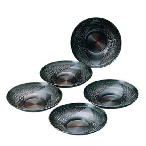 新光金属(Sinkoukinzoku) 茶托 黒銅仕上げ 108φ×18Hmm 純銅黒銅仕上げ 鎚目茶托 五客揃 鶴 BC-1052 5セット入