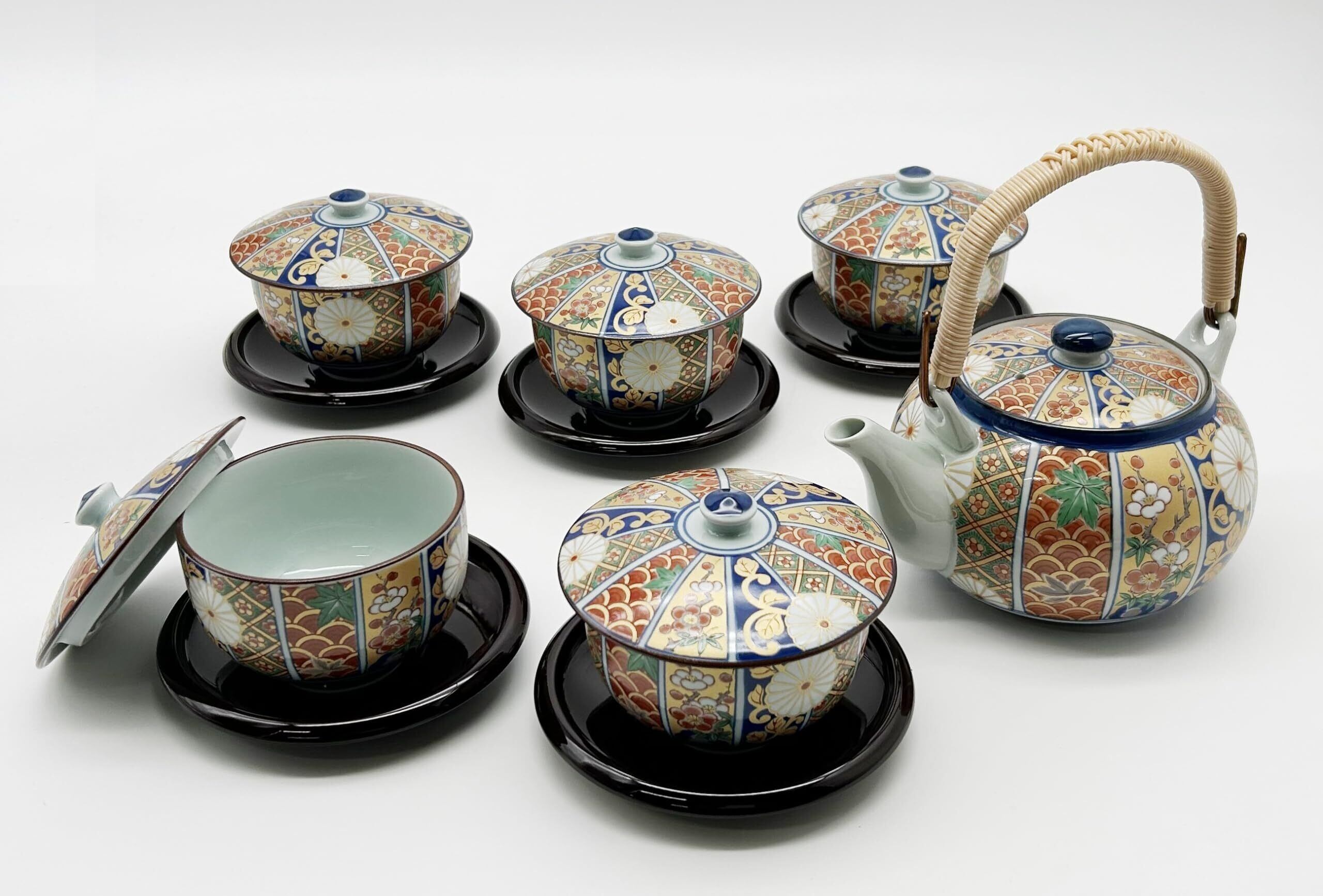 伝統的な意匠の風格ある茶器揃です。おもてなしの茶器としてお勧めしたい一品です。華やかで格調高い古伊万里風の意匠が印象的な茶托付の茶器セット、来客などのフォーマルなシーンにも最適。