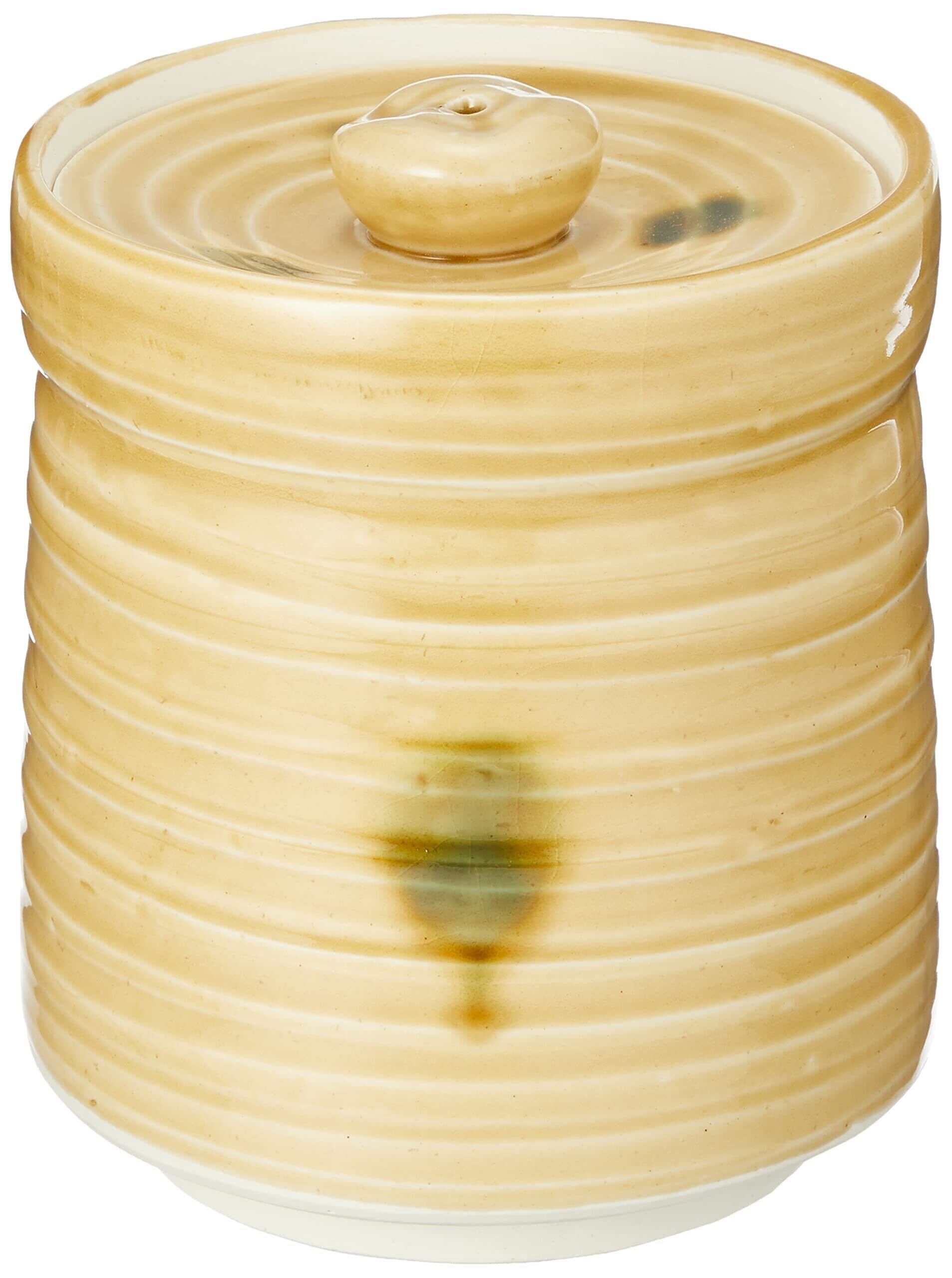 五陶(Goto) 水指 黄色 サイズ:直径13.1x高さ15cm 短冊用 黄瀬戸 紙箱入