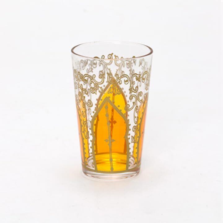 日常的にミントティーを飲む習慣があるモロッコで親しまれている、色鮮やかなプリントミントティーグラスです。