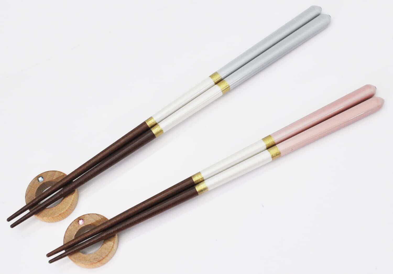 イシダ 食器洗浄機対応箸 桐箱 箸置付 シャンパンペア 23cm/21cm 水色/ピンク 【63168】