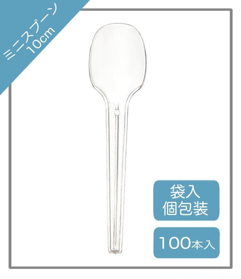 ニッチプラス(Niche Plus)個包装 使い捨て プラスチック ミニスプーン デザート 透明 クリア 100mm 100本