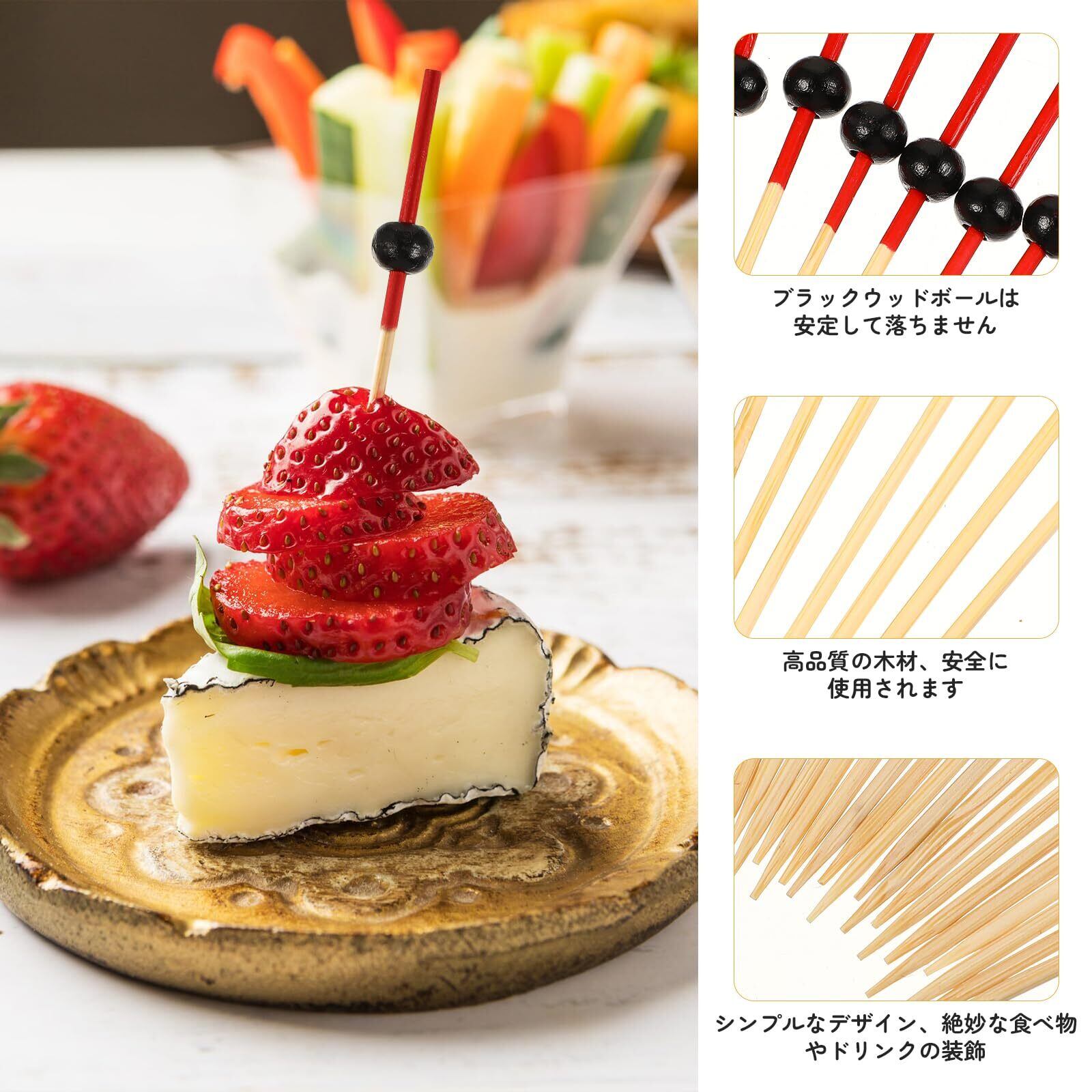 WINOMO カクテルピック カクテルピン フルーツピック ケーキトッパー ピック 菓子 果物 飾り パーティー用 約100本セット ( 黒のフラットビーズ )