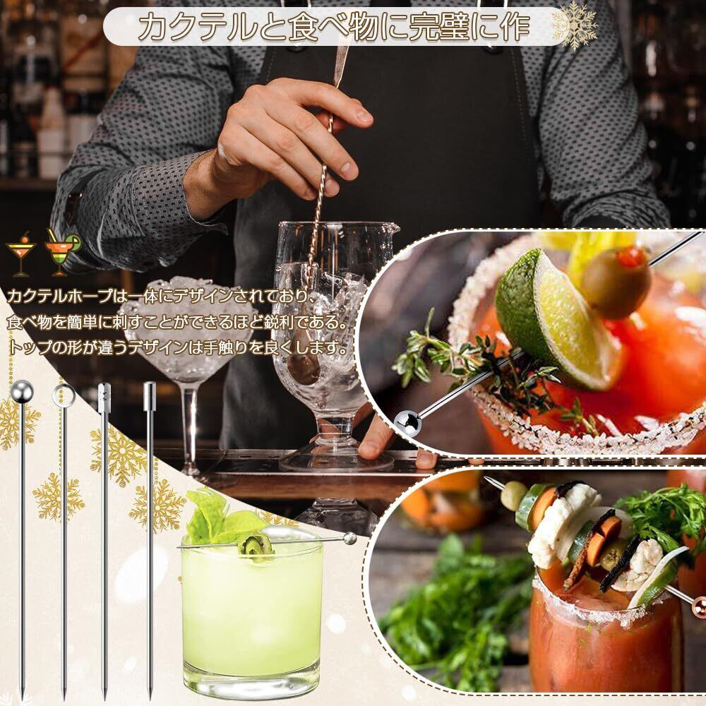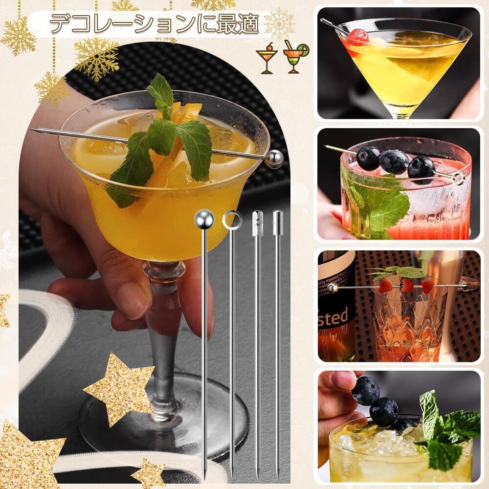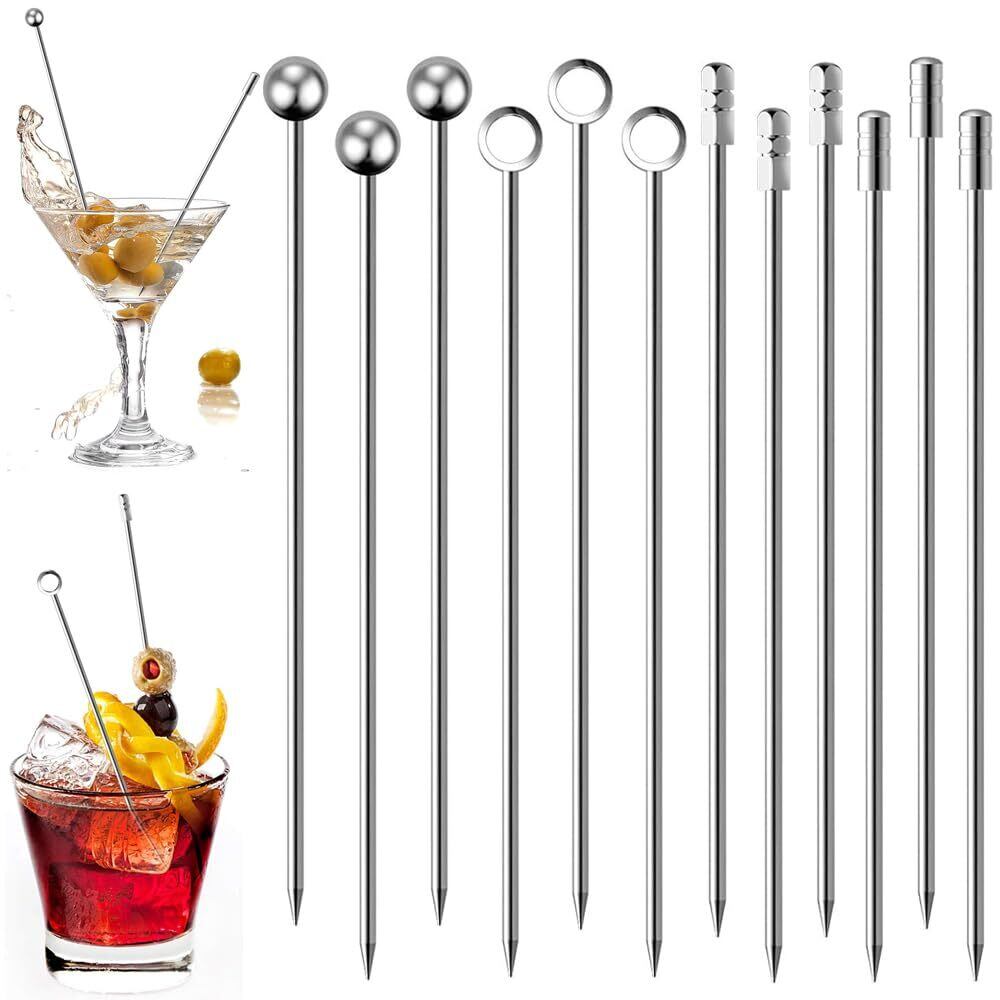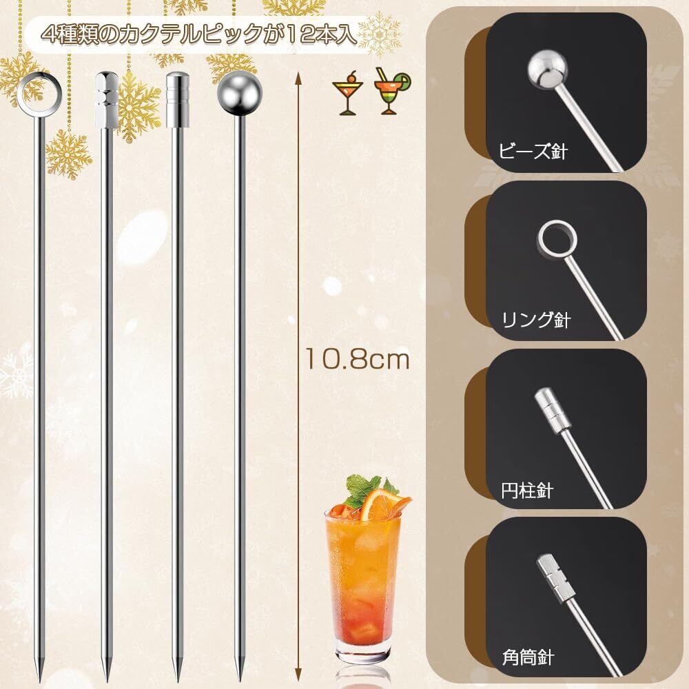 セット内容:カクテルピン12点セット(4タイプ各3本合計12点セット)円柱形、円形、四角形、環状の4種類の握り棒のスタイルが含まれます。長さは約10.7cm(4.2in);これは家族や友達とパーティーをするのにいい選択です。