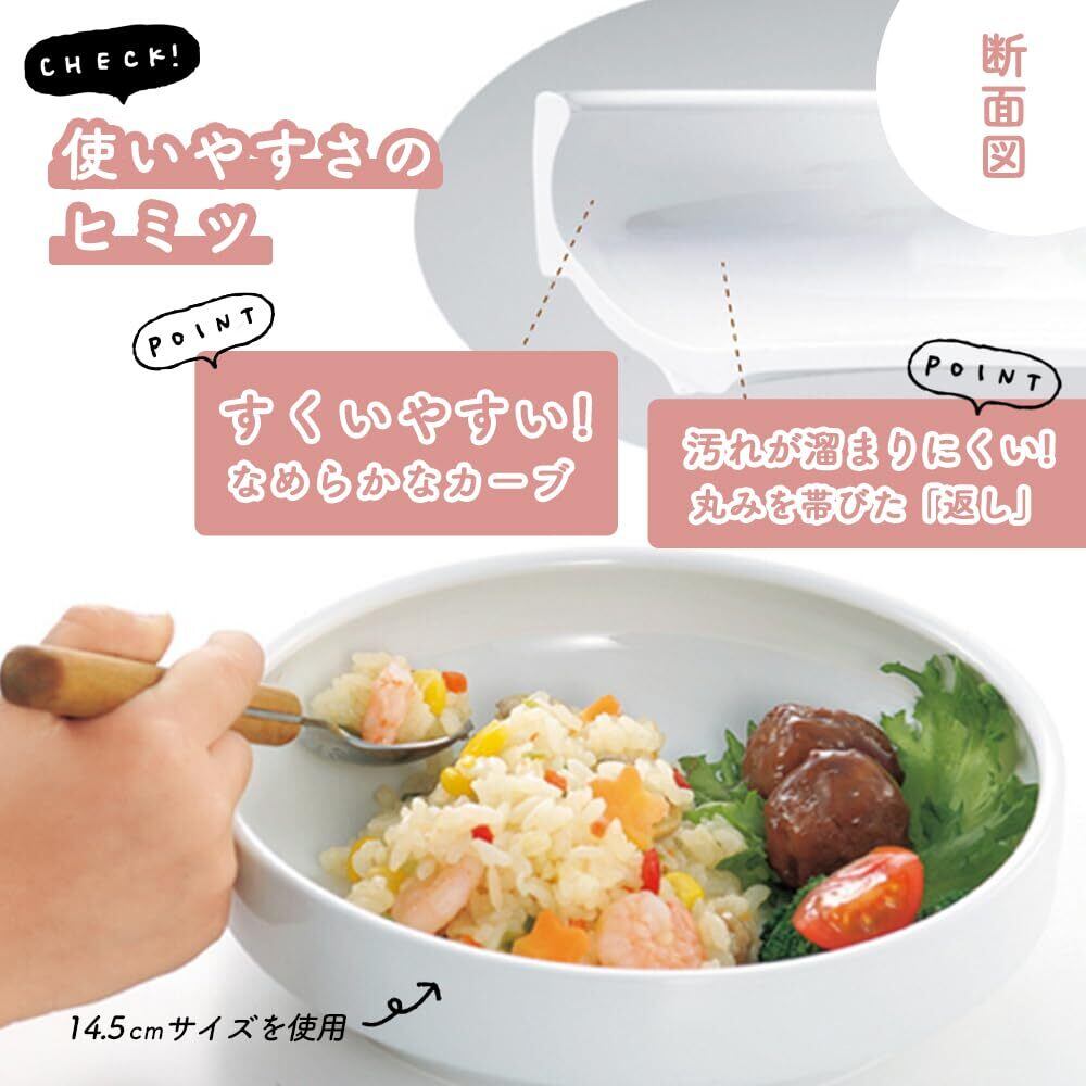 【17cm すくいやすい食器】まるくぱーじゅ(公式) 2歳~小学生 ワンプレート どんぶり サラダ皿 深皿 子ども食器 食洗機 電子レンジ 保育園給食 陶磁器 強化磁器 (ホワイト)