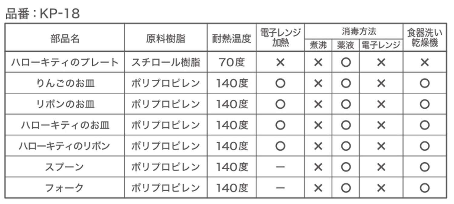 耐熱温度:140度(ハローキティのプレートのみ70度)