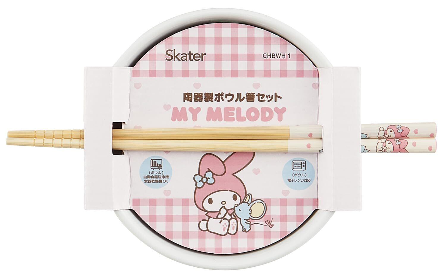 スケーター(Skater) 陶器製 ボウル 竹製 箸 セット 600ml 21cm サンリオ マイメロディ お友だち 女の子 CHBWH1-A