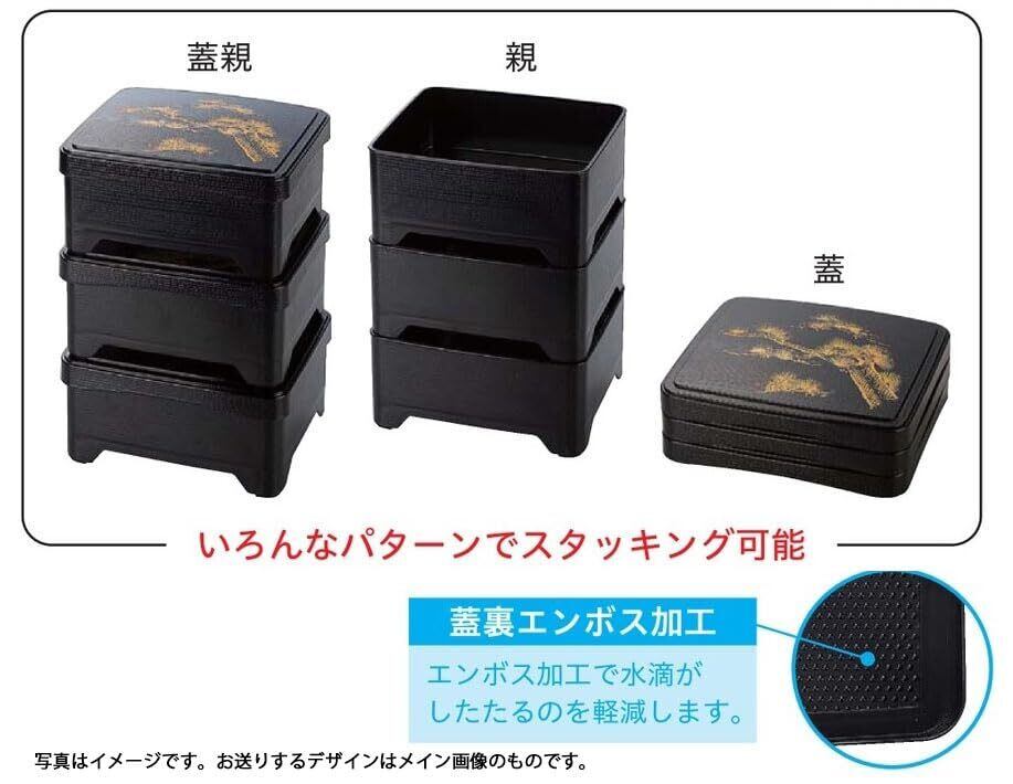 J-kitchens テイクアウト象足 鰻重箱 丼重 黒に赤老松 ABS樹脂、ポリプロピレン製 16.2x14.3x7.5cm 日本製