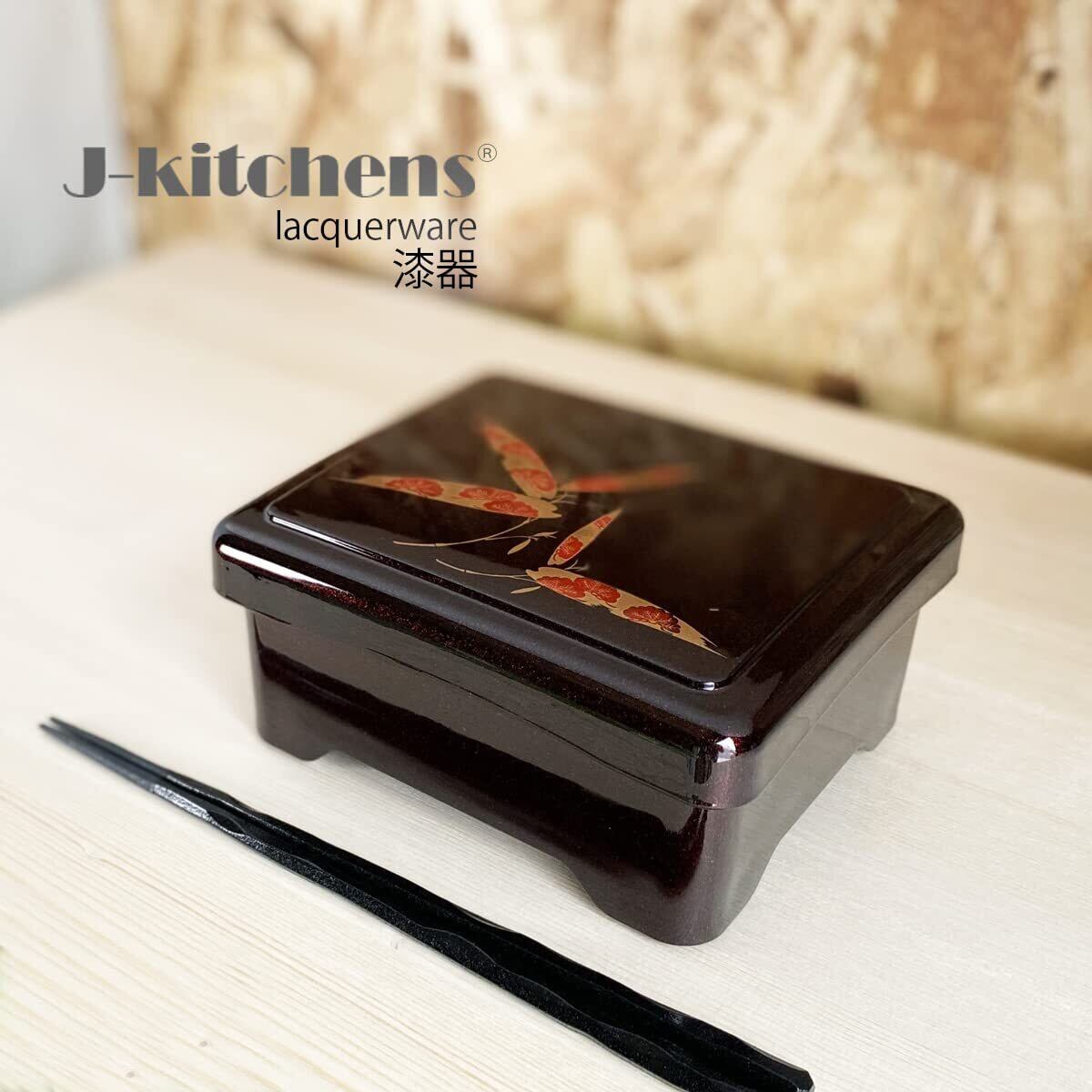 J-kitchens 鰻 器 うな重 重箱 食洗機対応 耐熱 天竜丼重 パール笹内朱塗 鰻 (うなぎ) 重箱 16.8cm ×14.4cm ×8cm 日本製 (25)