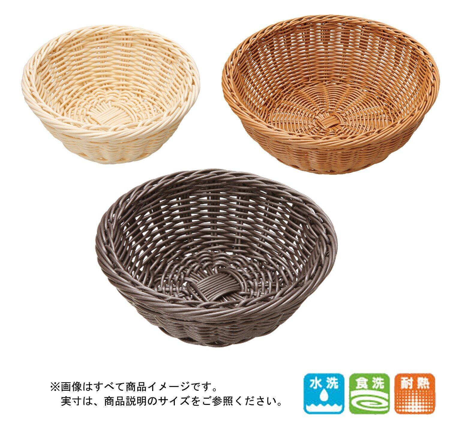 バスケット かご 丸 22cm ディスプレー パン用 食洗機対応 樹脂 ダークブラウン 91-080C