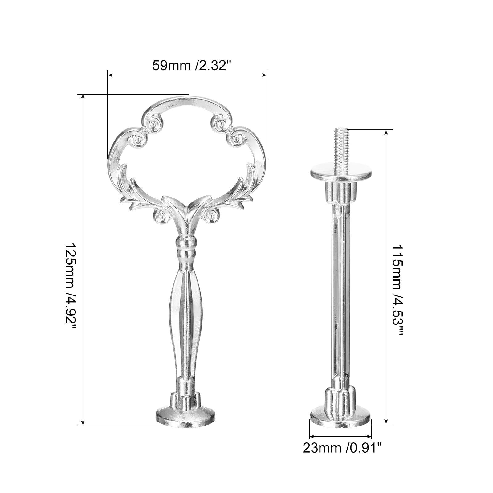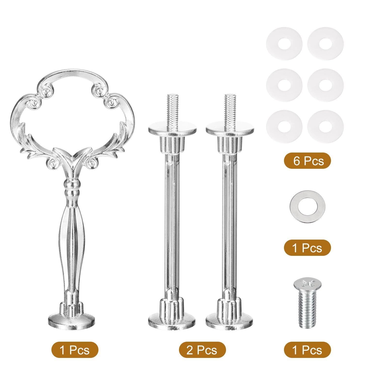 uxcell ケーキトレイスタンドハンドル カップケーキデザートプレート金具ホルダー ロッドスタンドハンドル太目 ケーキスタンド ウェディング パーティー用 3段フラワー シルバートーン 1セット