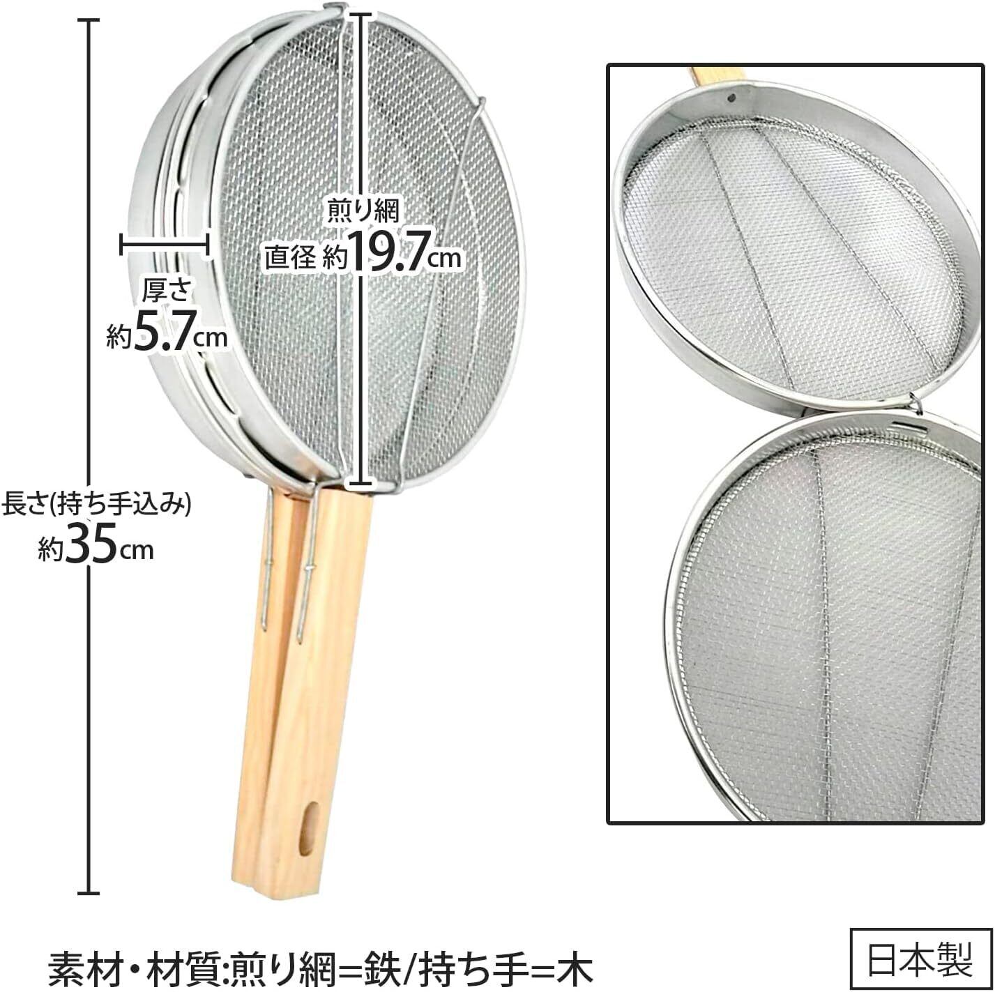 本体サイズ:煎り網直径19.7cm×長さ35cm(持ち手込み)×厚さ5.7cm