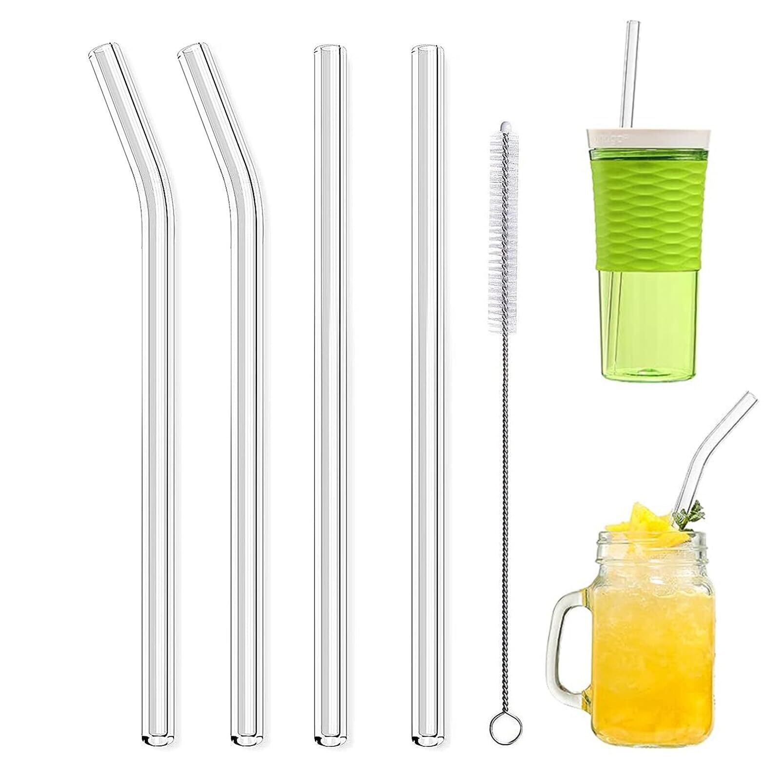 KALOLINNA ガラスストロー ガラス製 耐熱 再利用可能 安全無毒 環境に優しい 洗浄ブラシ付き 4本セット