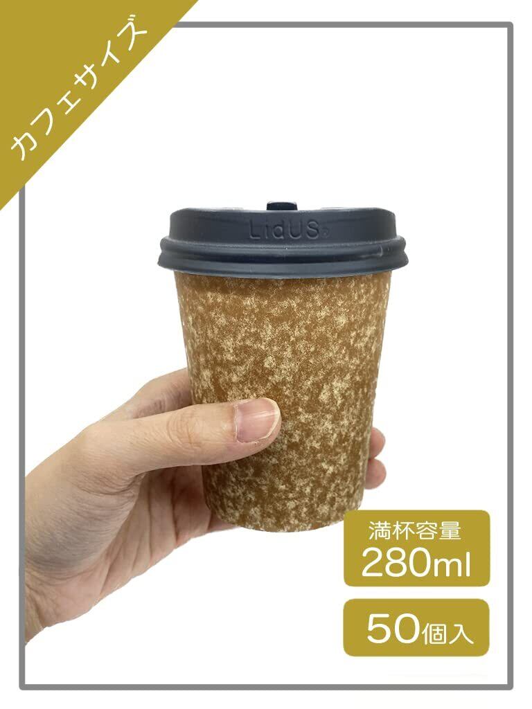 ニッチプラス(Niche Plus) テイクアウト カフェサイズ 紙コップ クラフト 未晒 280ml 専用フタ付(開閉式) 50セット
