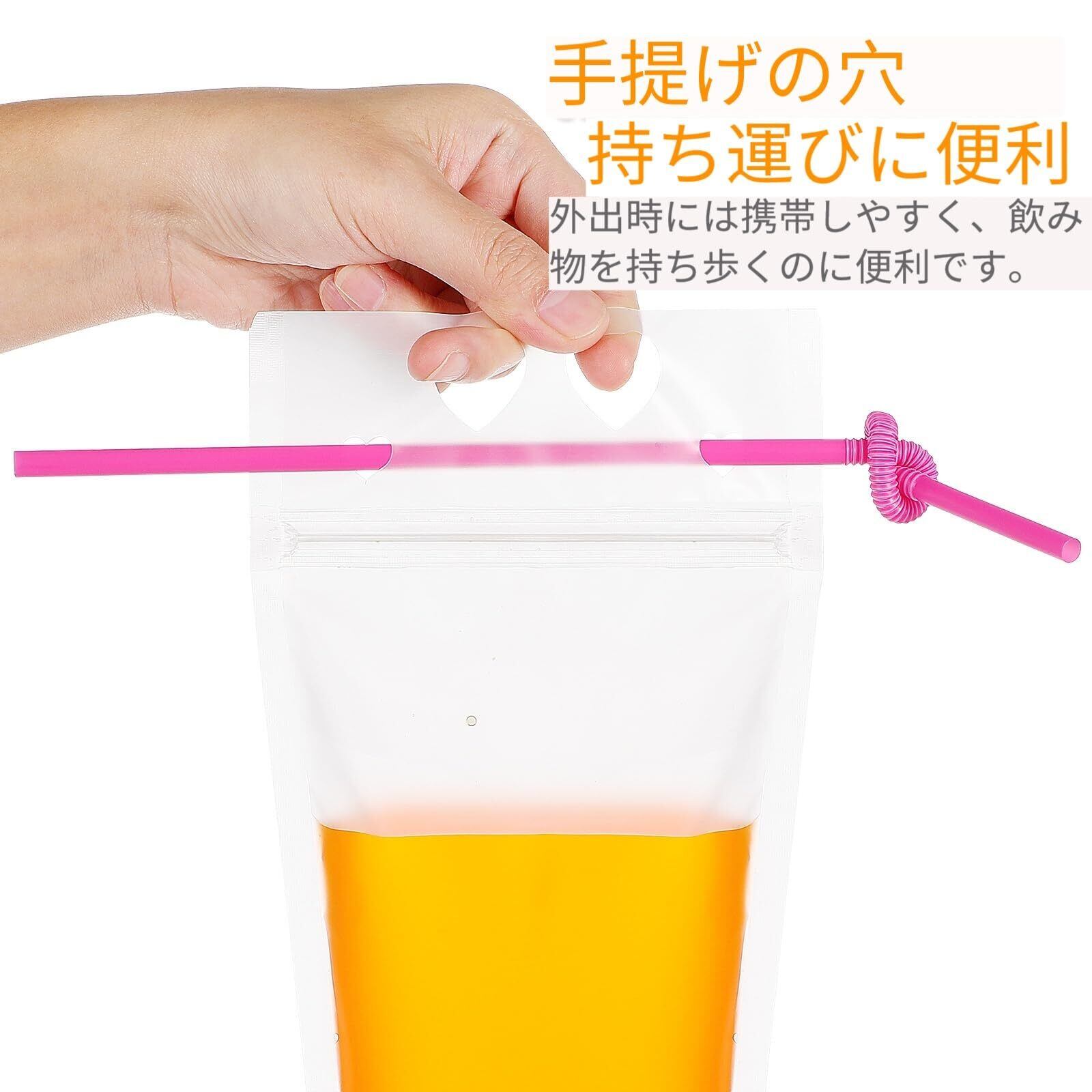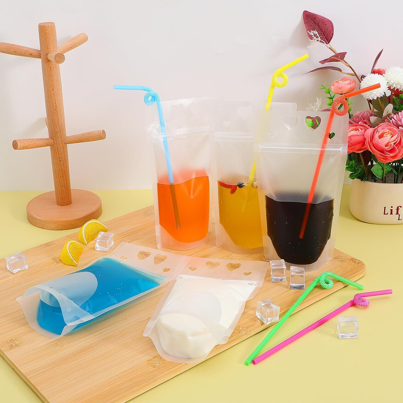 NUOLUX 飲み物 バッグ 飲料 ジュース袋 ストロー 500ml 大容量 使い捨て 透明 50枚入り 密封 保存 飲料袋 DIY 飲み物用 業務用 DIYドリンク 持ち運び便利 ジュース飲料袋 曲がるストロー付き ストロー色ランダム