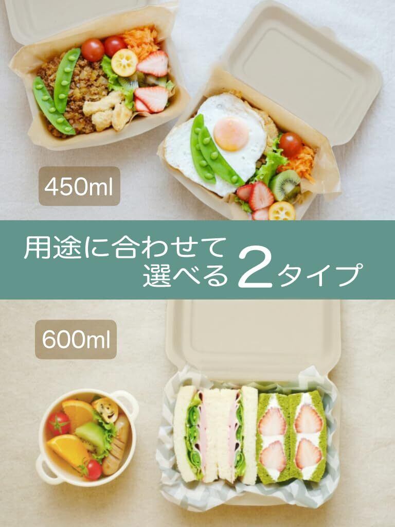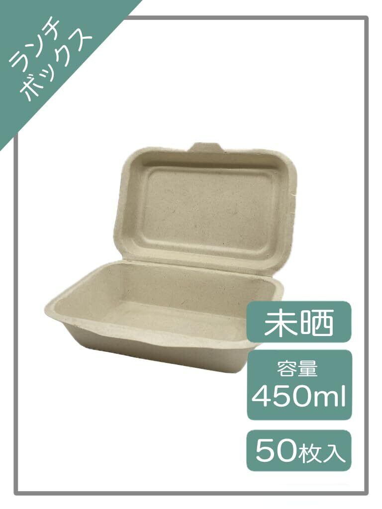 トーシン(Toshin)使い捨て エコ バガス 業務用 フードパック(容量:450ml) 50枚 電子レンジ対応 未晒 クラフト BOX450