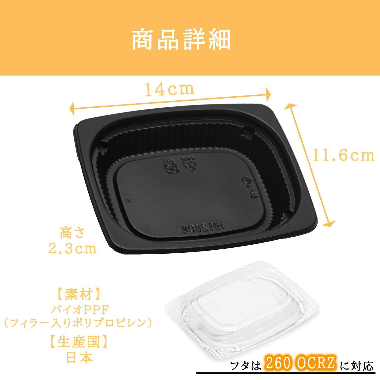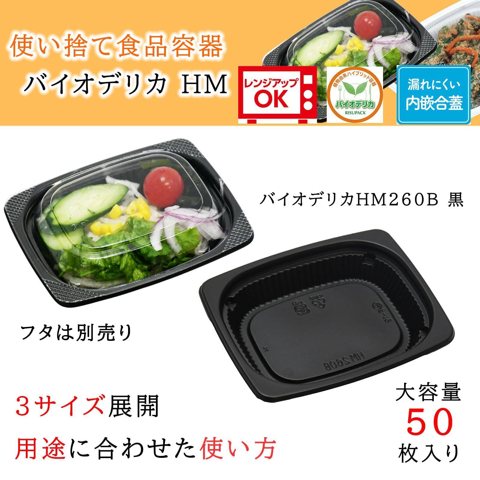 リスパック(Risupack) バイオデリカ HM260B 黒 本体 50枚入り 日本製 内嵌合蓋 レンジ対応 スタッキング可能 汁漏れ防止 シンプル テイクアウト デリバリー フードパック 惣菜 業務用 RHIF772