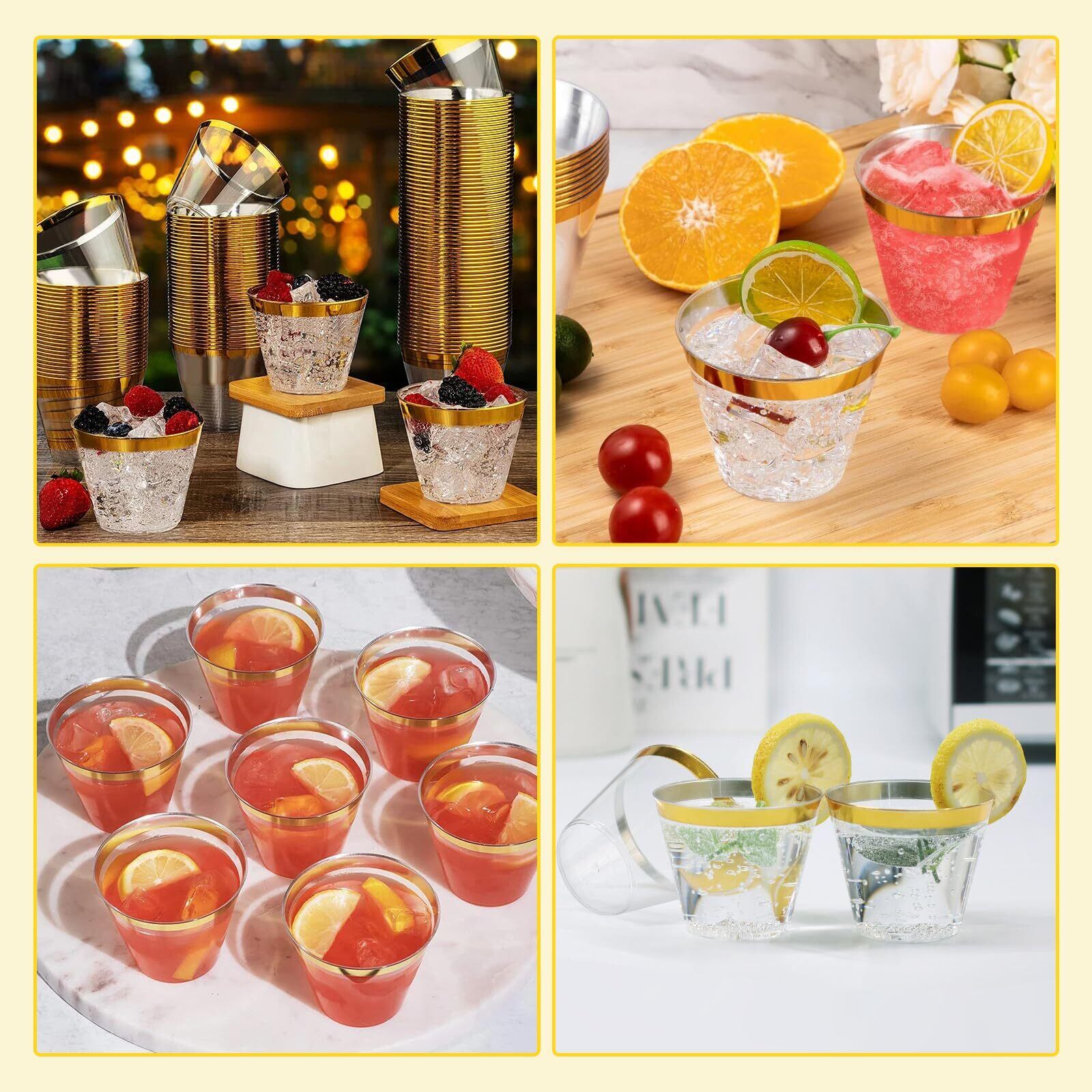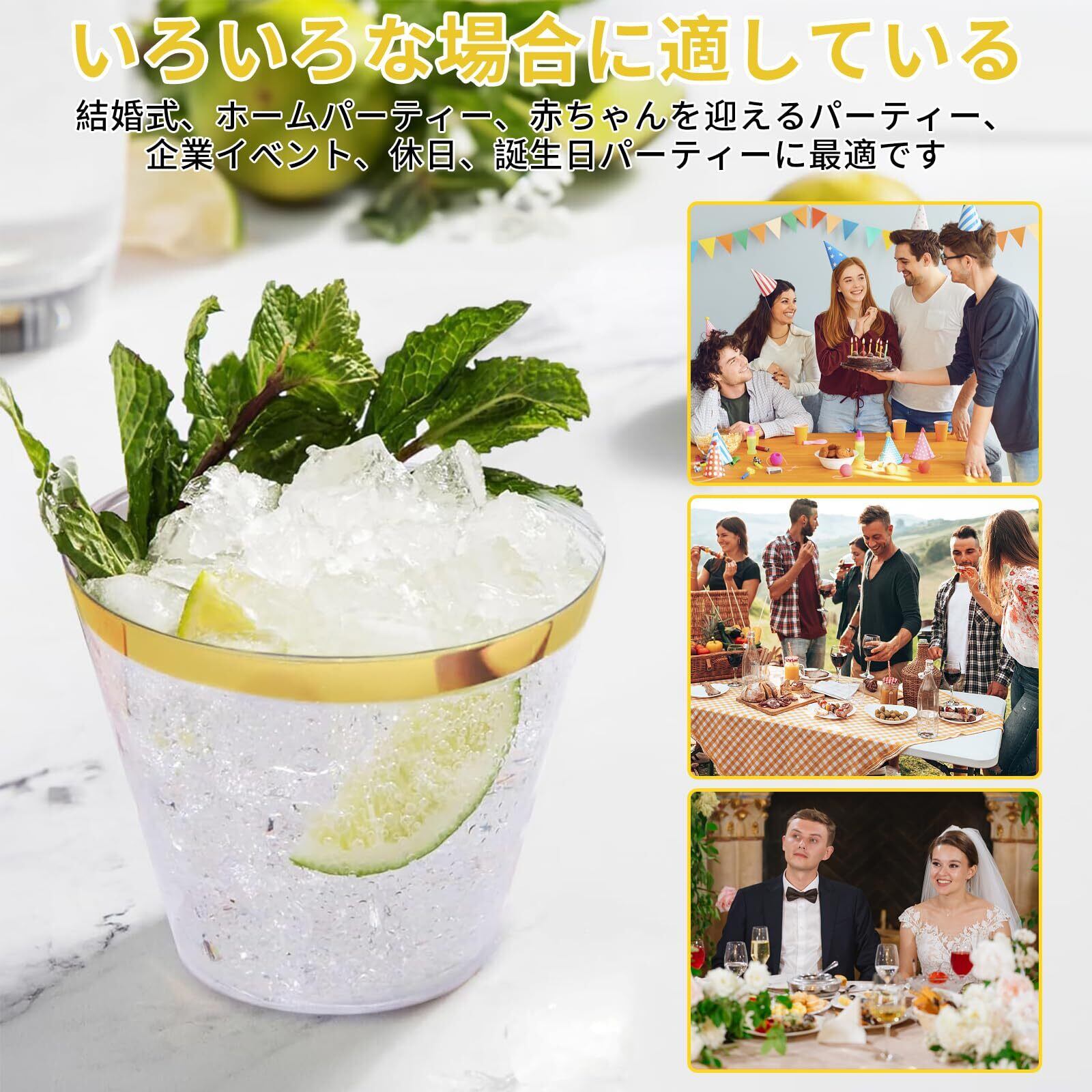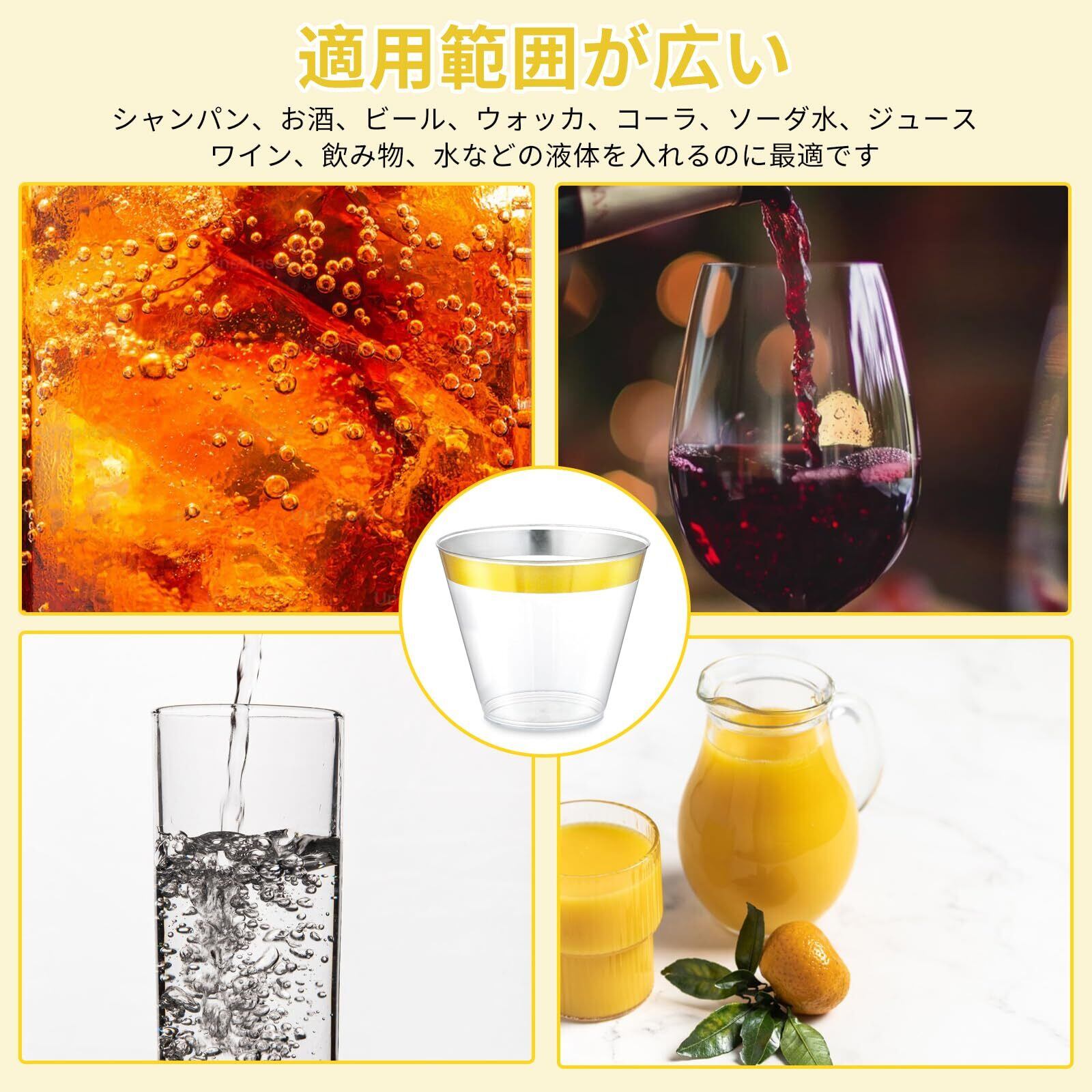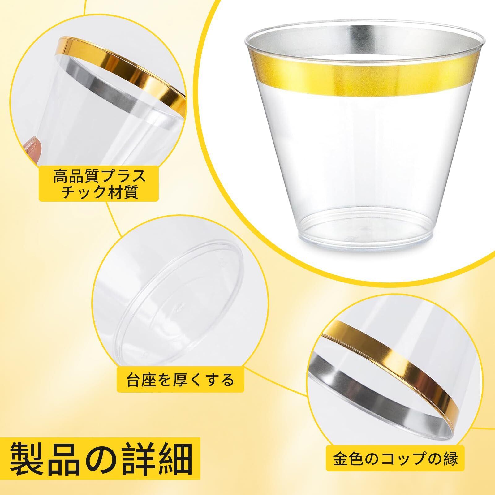Doyime プラスチックカップ プラカップ 使い捨てカップ 270ml 9オンス 50個 アイスクリームカップ 透明プラスチックカップ 使い捨てハードカップ 西洋料理 カップ プラスチックワインカップ カクテルカップ パーティーカップ ジュースグラス 誕生日 結婚 新築 クリスマス