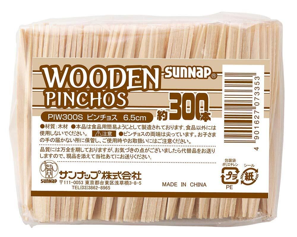 サンナップ ピンチョスピック 300本【食材にしっかり刺さる木製ピックス、お洒落なバルを演出】スペイン風爪楊枝 65mm PIW300S