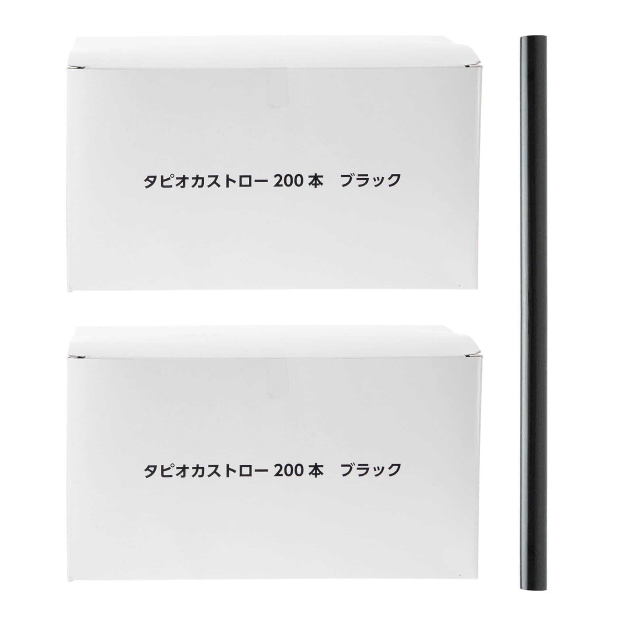 【 限定】 ストリックスデザイン タピオカストロー 400本 (200本×2個セット) 21cm 直径1cm ブラック ストロー 太め 箱入り おしゃれ カフェ タピオカ スムージー 大容量 業務用 SD-100