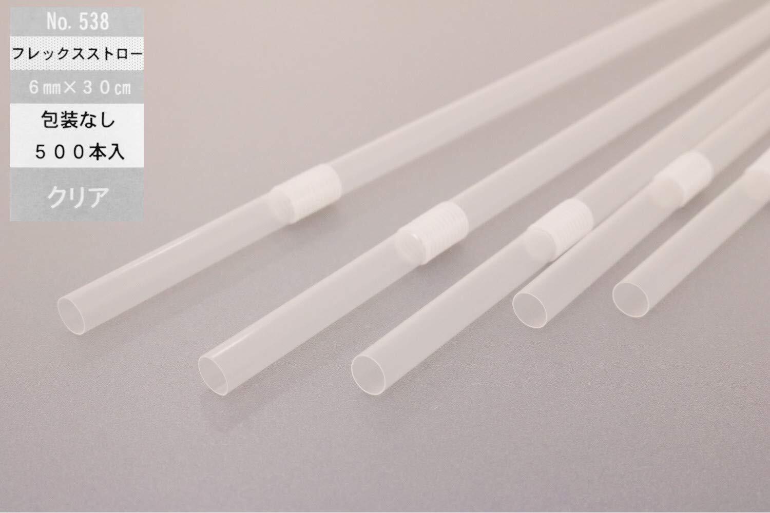 シバセ工業 538わらおストロー ジュース用ロング フレックス 口径6mm×30cm 包装なし 500本入 クリア 日本製