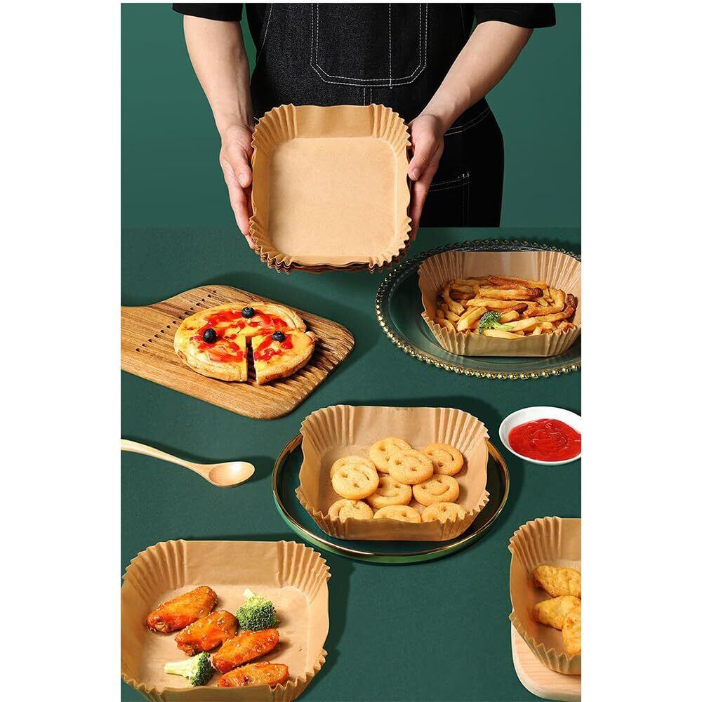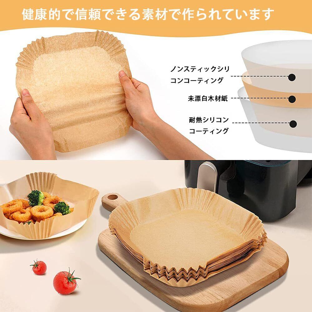 【健康で安全な素材】AiQInu エアフライヤー用紙は天然木材パルプを使用し、食品グレードの品質、蛍光剤と漂白剤を使用せず、安全で健康的に使用することができます。