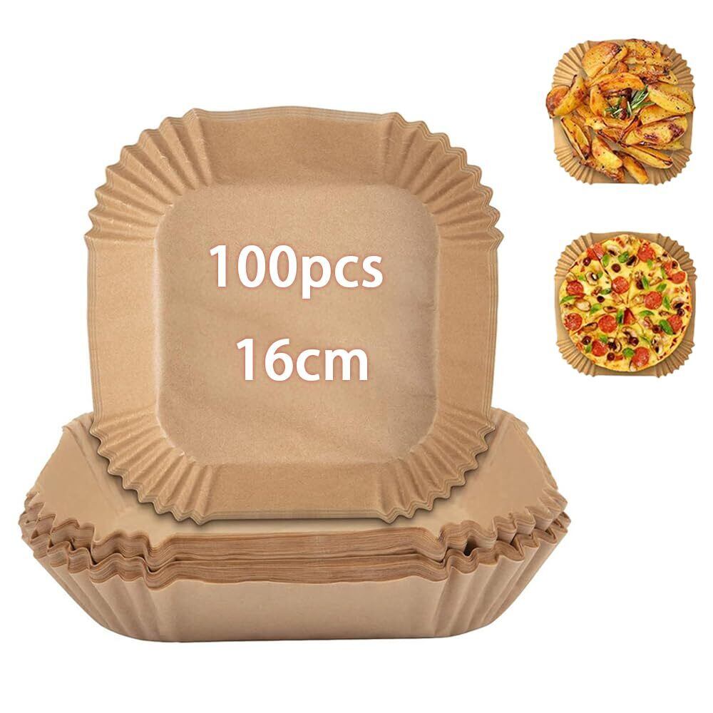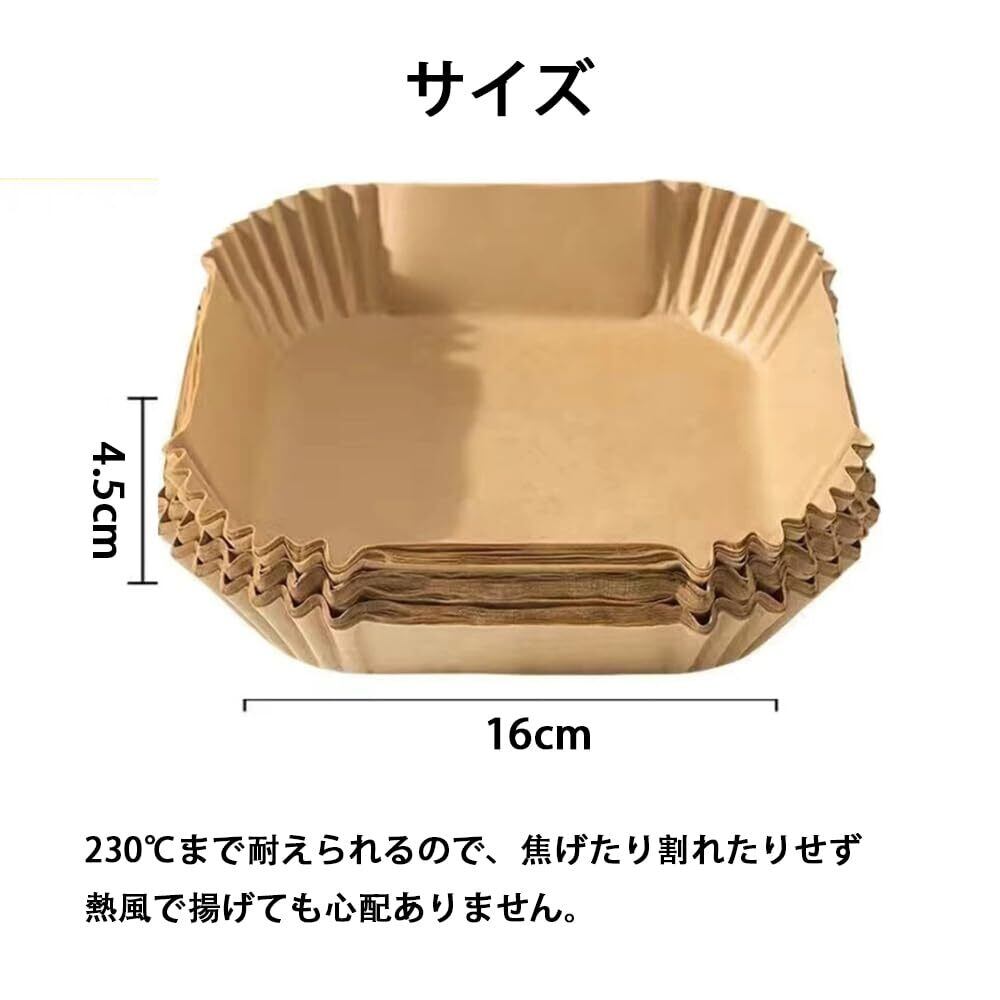 エアフライヤー用紙 スクエア型 天ぷら敷紙 油紙 ノンフライヤー 使い捨て紙 内径16.5cm 100枚セット 3-6L適用 耐熱性 耐油性 耐水性 シリコーンオイル紙 電子レンジ オーブン 蒸し器利用可能 スクエア型 230℃耐熱 揚げ物 ケーキ お菓子 使い捨て 茶色 キッチン専用