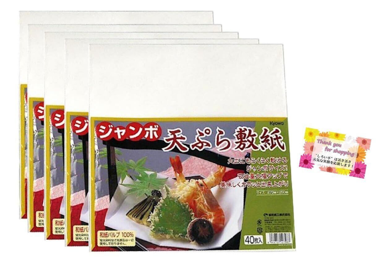 【日本製】天ぷら敷紙 ジャンボサイズ 270x250mm 大皿にもらくらく 和紙パルプ100% 蛍光染料不使用 40枚×5セット